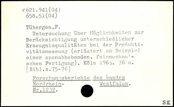 Untersuchung über Möglichkeiten zur Berücksichtigung unterschiedlicher Erzeugnisqualitäten bei der Produktivität smessung (erläutert am Beispie] einer spanabhebenden, feinmechanischen Fertigung).
