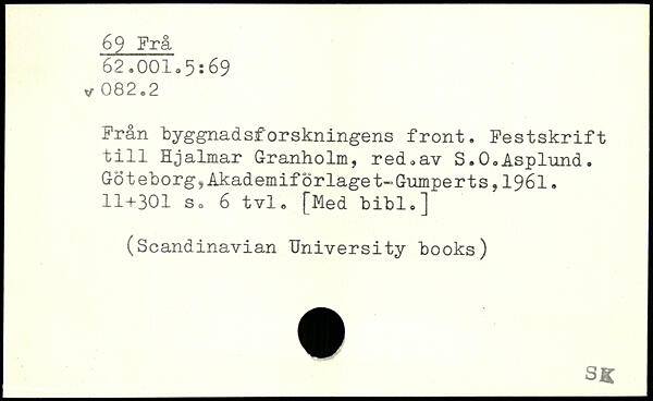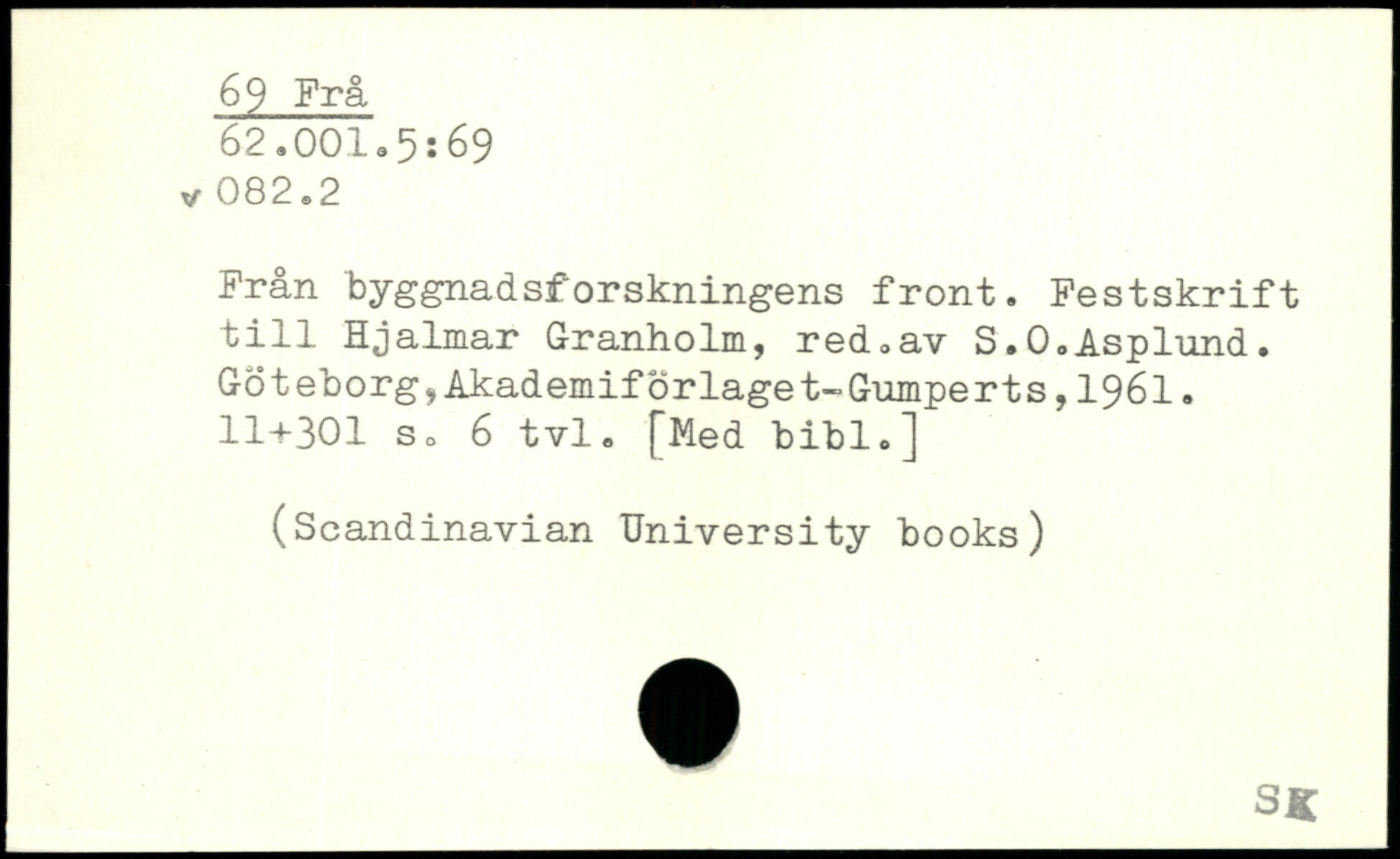 Från byggnadsforskningens front. Festskrift till Hjalmar Granholm, red.av S.O.Asplund. Göteborg. Akademif örlaget-Gumperts, 1961.