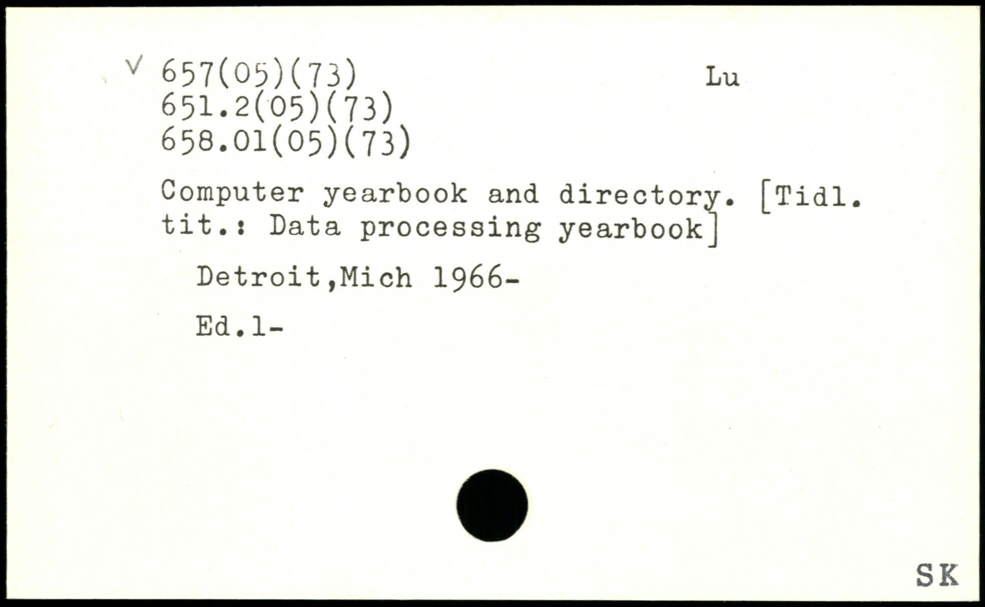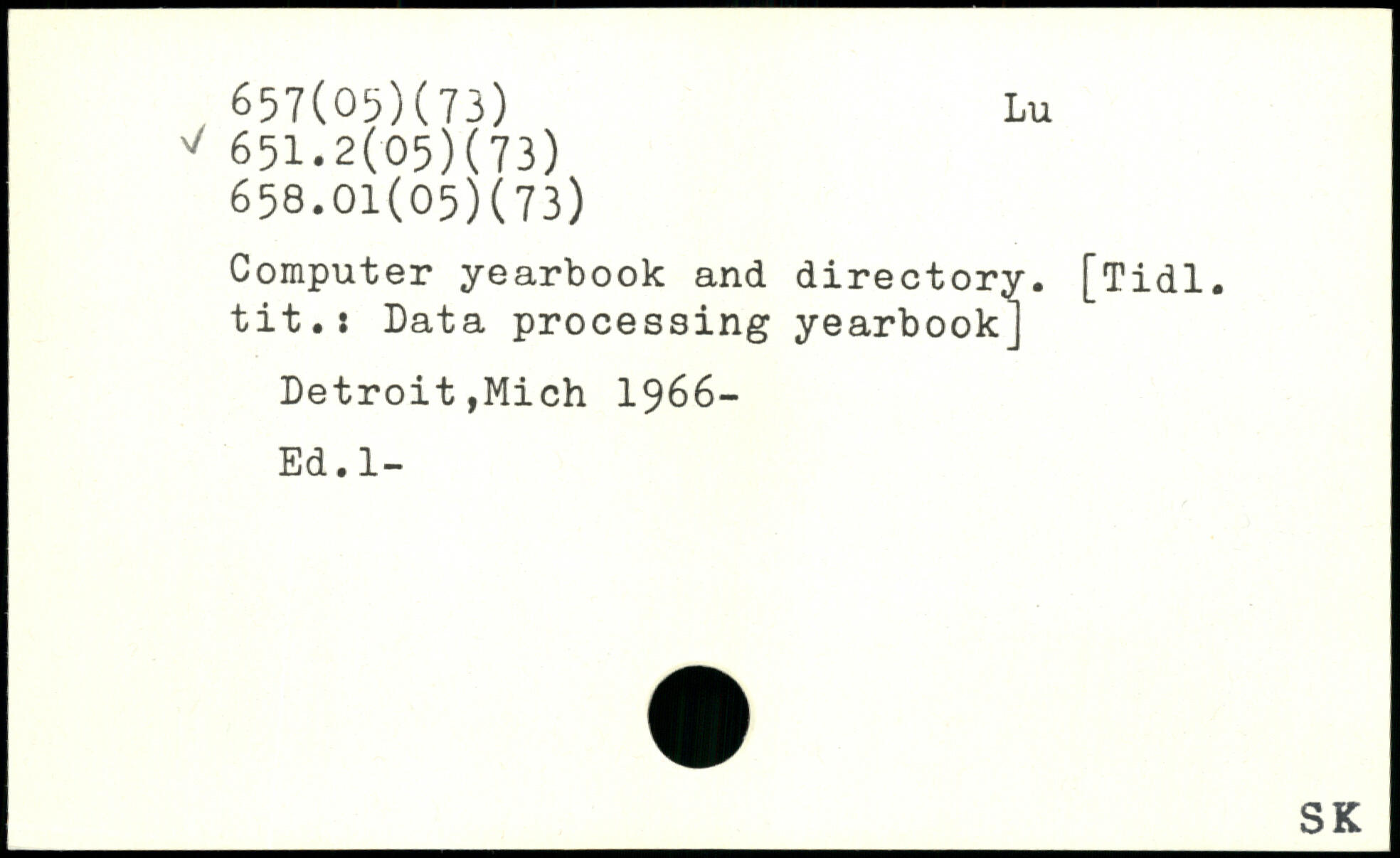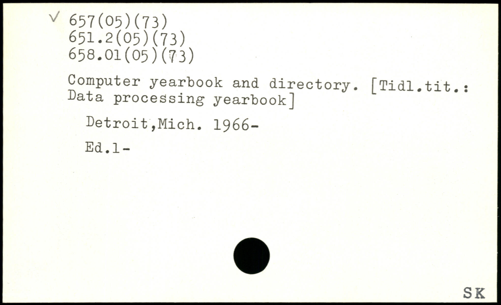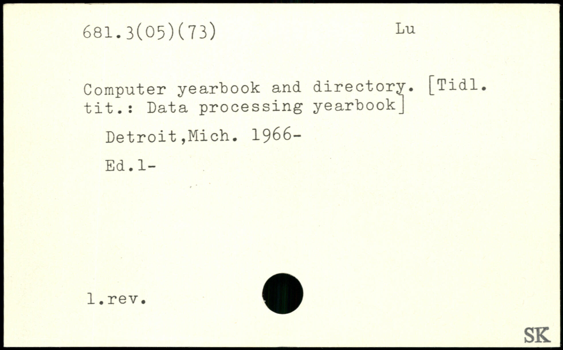 Computer yearbook and directory. [Tidl. tit.: Data processing yearbook] Detroit,Mich 1966- Ed.l-