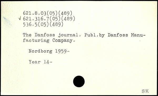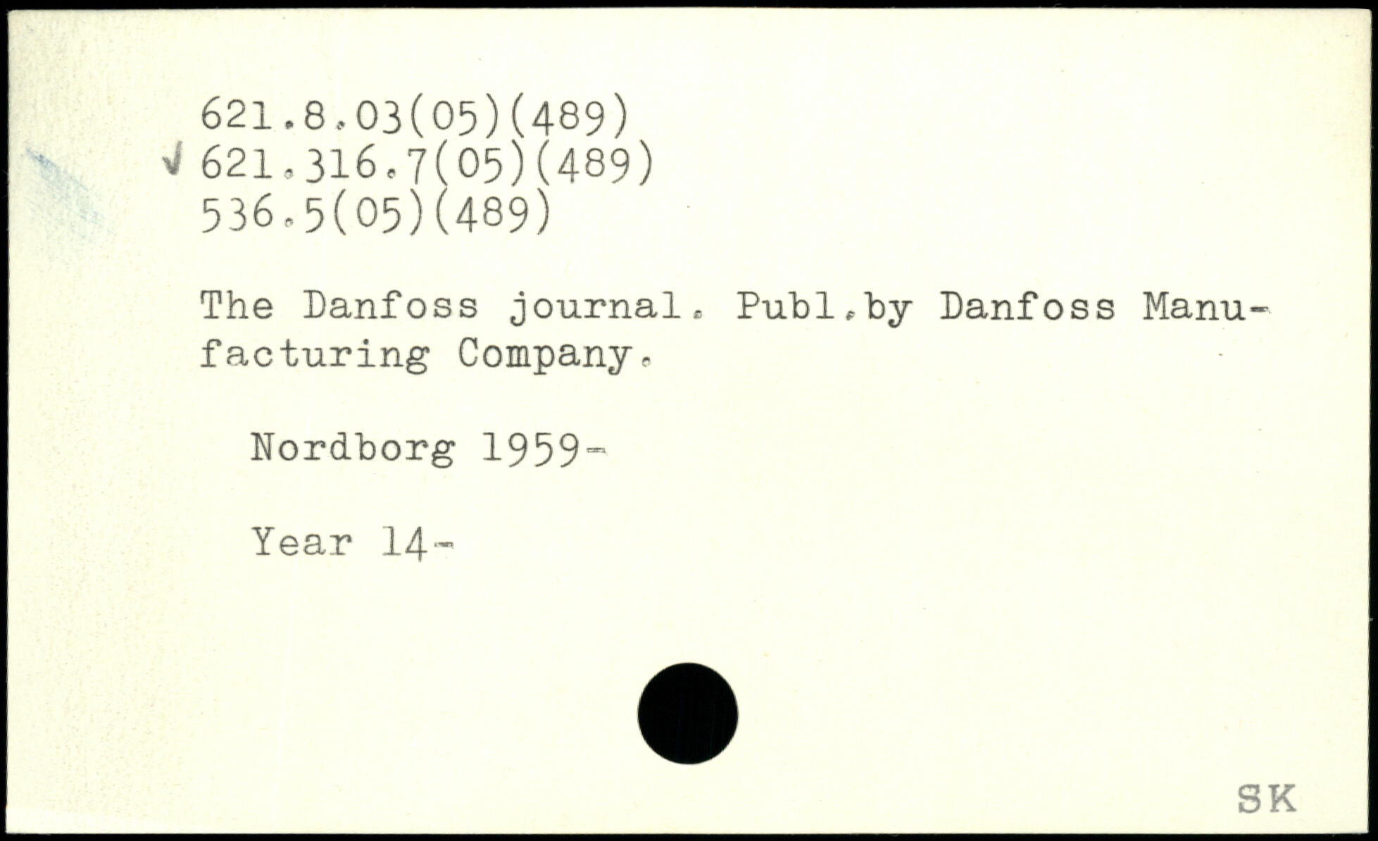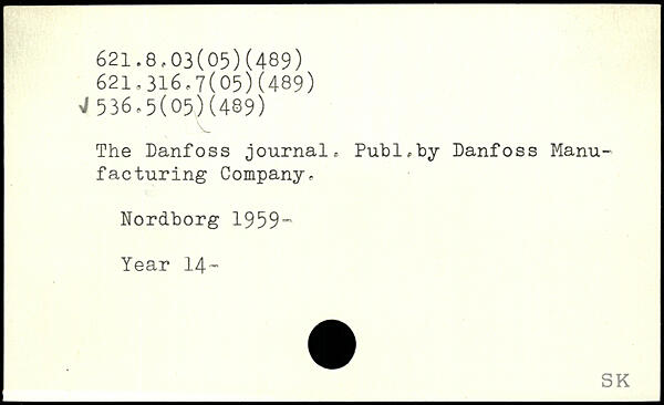 The Danfoss journal. Publ,by Danfoss Manufacturing Company- Nordborg 1959- Year 14-