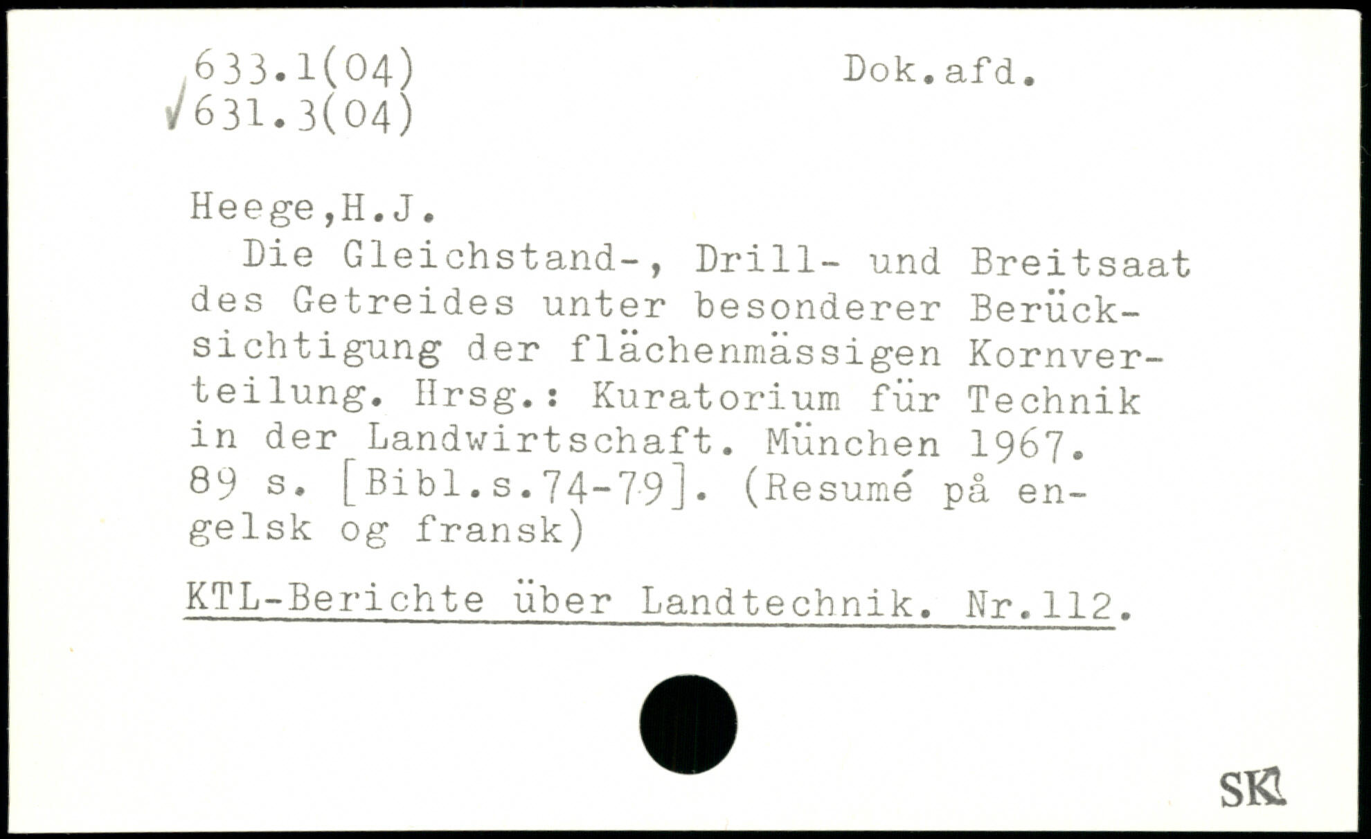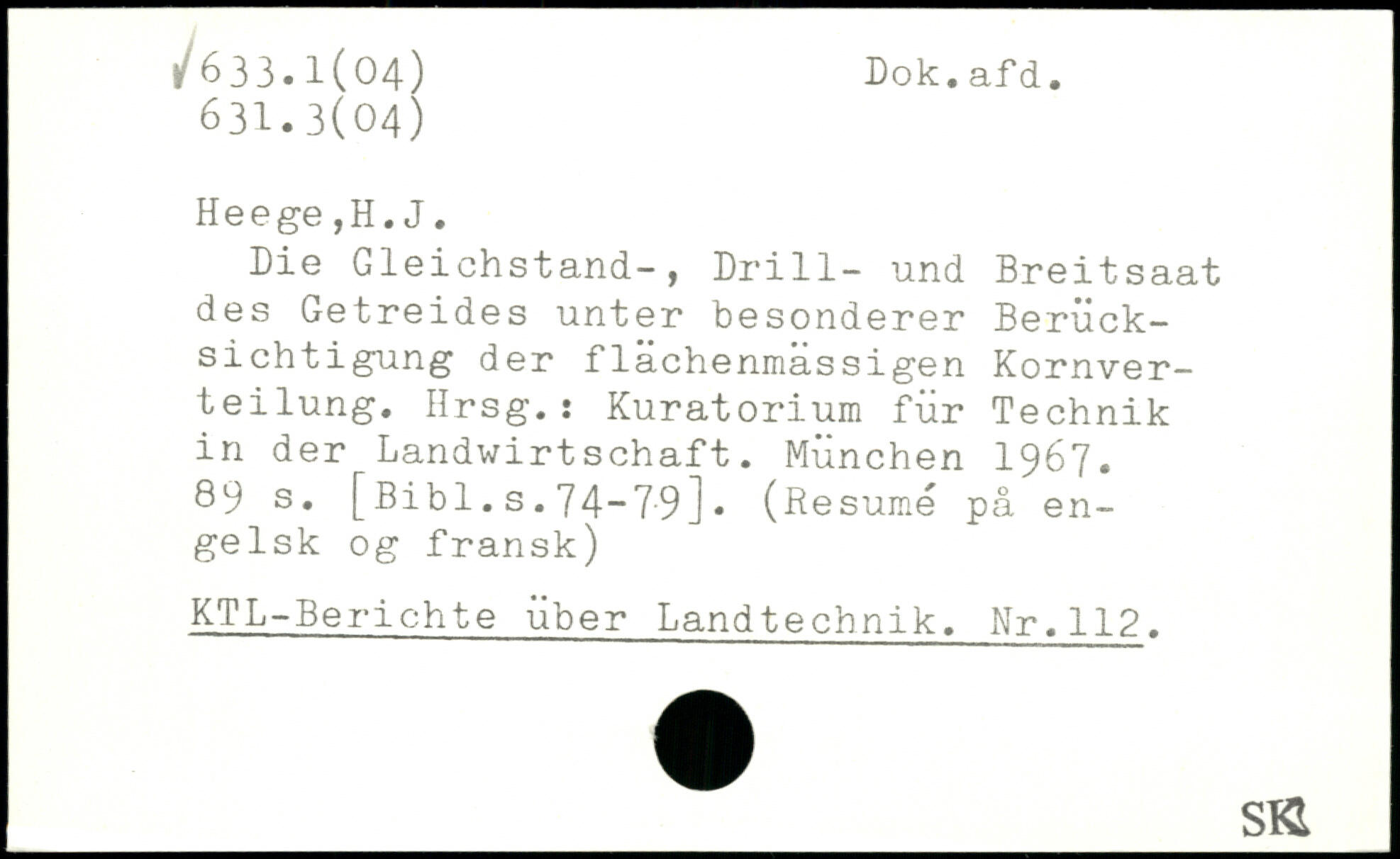 Die Gleichstand-, Drill- und Breitsaat des Getreides unter besonderer Berücksichtigung der flächenmassigen Kornverteilung. Hrsg.: Kuratorium für Technik in der Landwirtschaft.