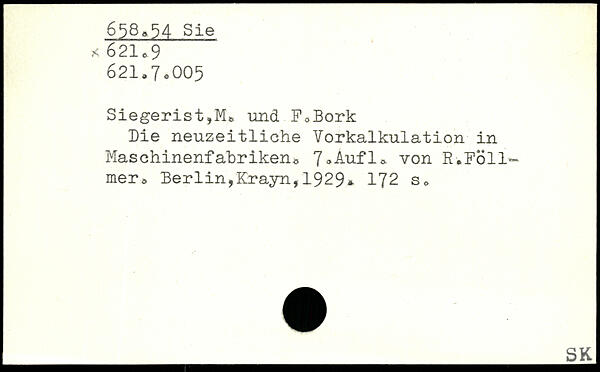 Die neuzeitliche Vorkalkulation in Maschinenfabriken, 7,Äufl, von R.