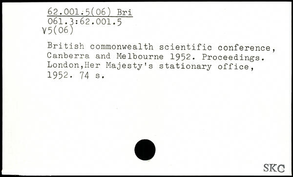 British commonwealth scientific conference, Canberra and Melbourne 1952. Proceedings. London,Her Majesty's stationary office, 1952.