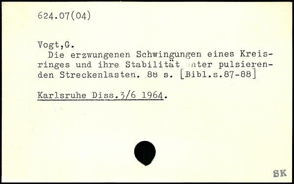 Die erzwungenen Schwingungen eines Kreisringes und ihre Stabilität inter pulsierenden Streckenlasten. 8ö s.