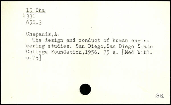 Chapanis. Ar, The design and conduct of human engineering studies. San Diego,San Diego State College Foundation,1956.
