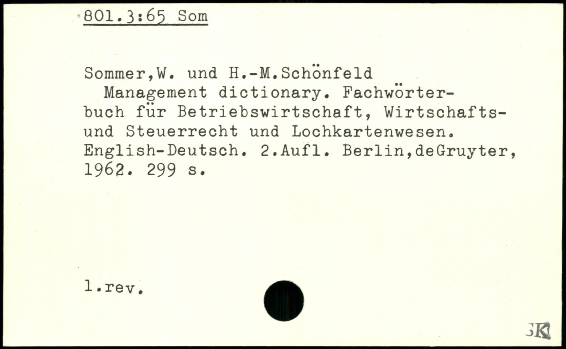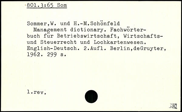 Management dictionary. Fachwörterbuch für Betriebswirtschaft, Wirtschaftsund Steuerrecht und Lochkartenwesen. English-Deutsch.