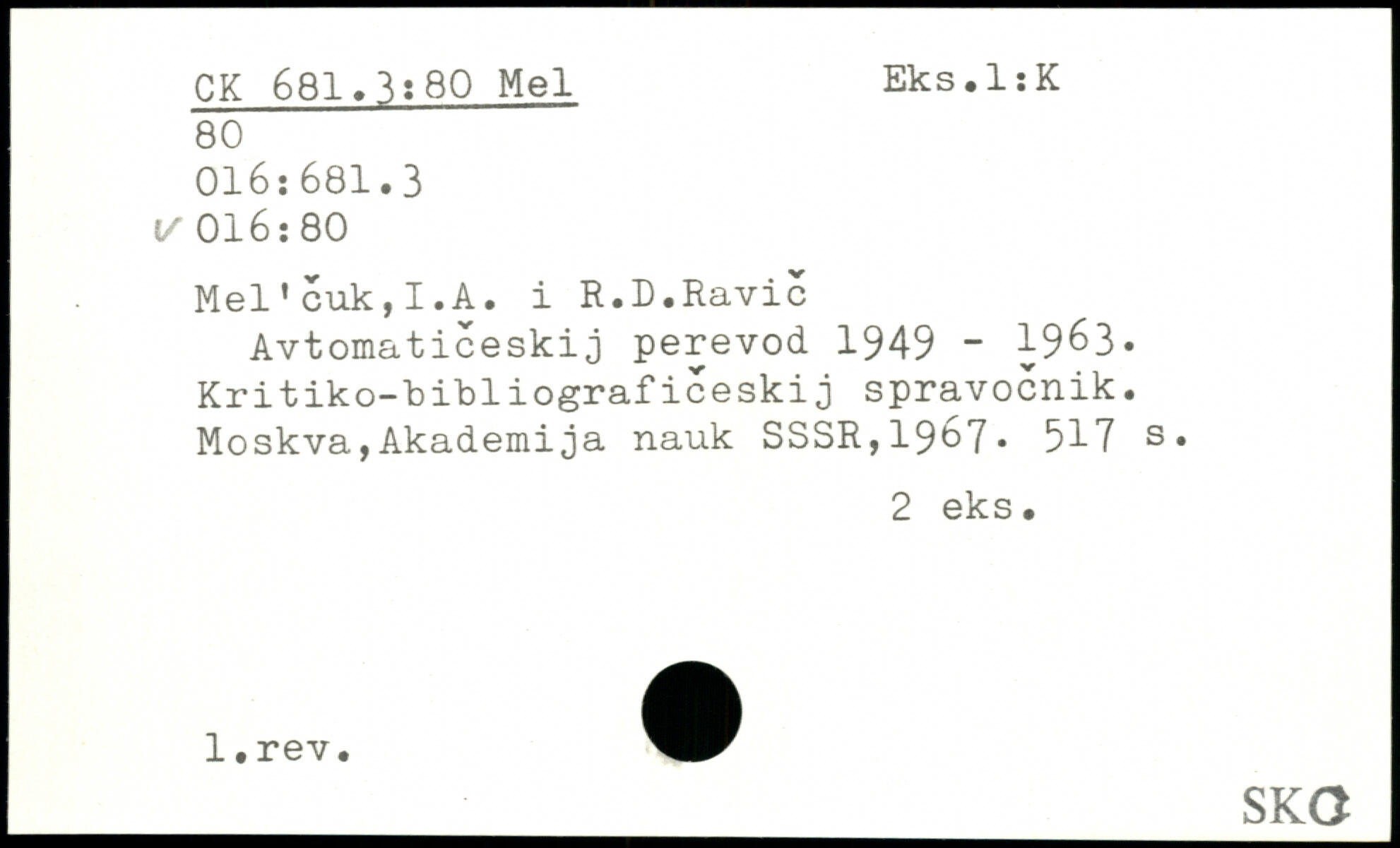Avtomaticeskij perevod 1949 - 1963, Kritiko-bibliograficeskij spravoenik.