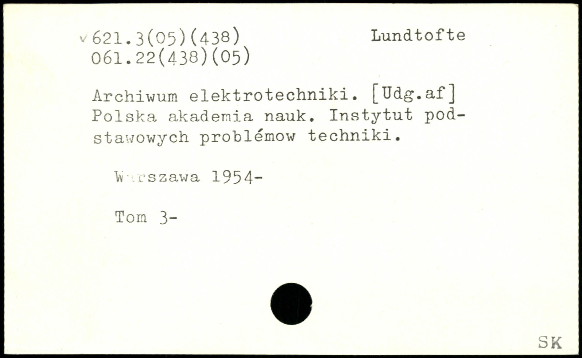 Archiwura elektrotechniki. [Udg.af] Polska akademia nauk. Instytut pod-stawowych problémow techniki. \v : c s zawa 1954- Tom 3-