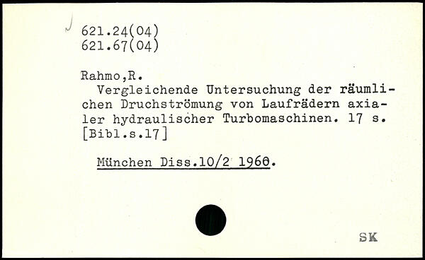 Vergleichende Untersuchung der räumlichen Druchströmung von Laufrädern axialer hydraulischer Turbomaschinen.