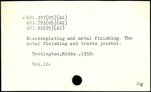 Electroplating and metal finishing; The metal finishing and trades journal. Teddington,Middx,,1959-