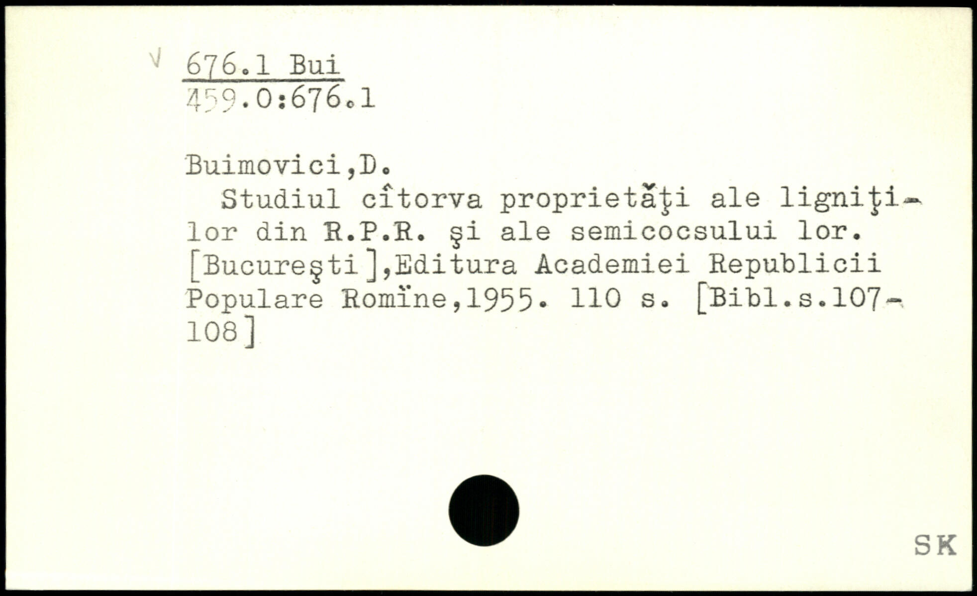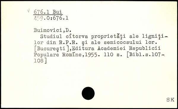 Studiul citorva proprieta^i ale ligniji— lor din R.P.R. §i ale semicocsului lor. [Bucure§ti]jEditura Academiei Republicii Populäre Romi’ne , 1955. HO s.