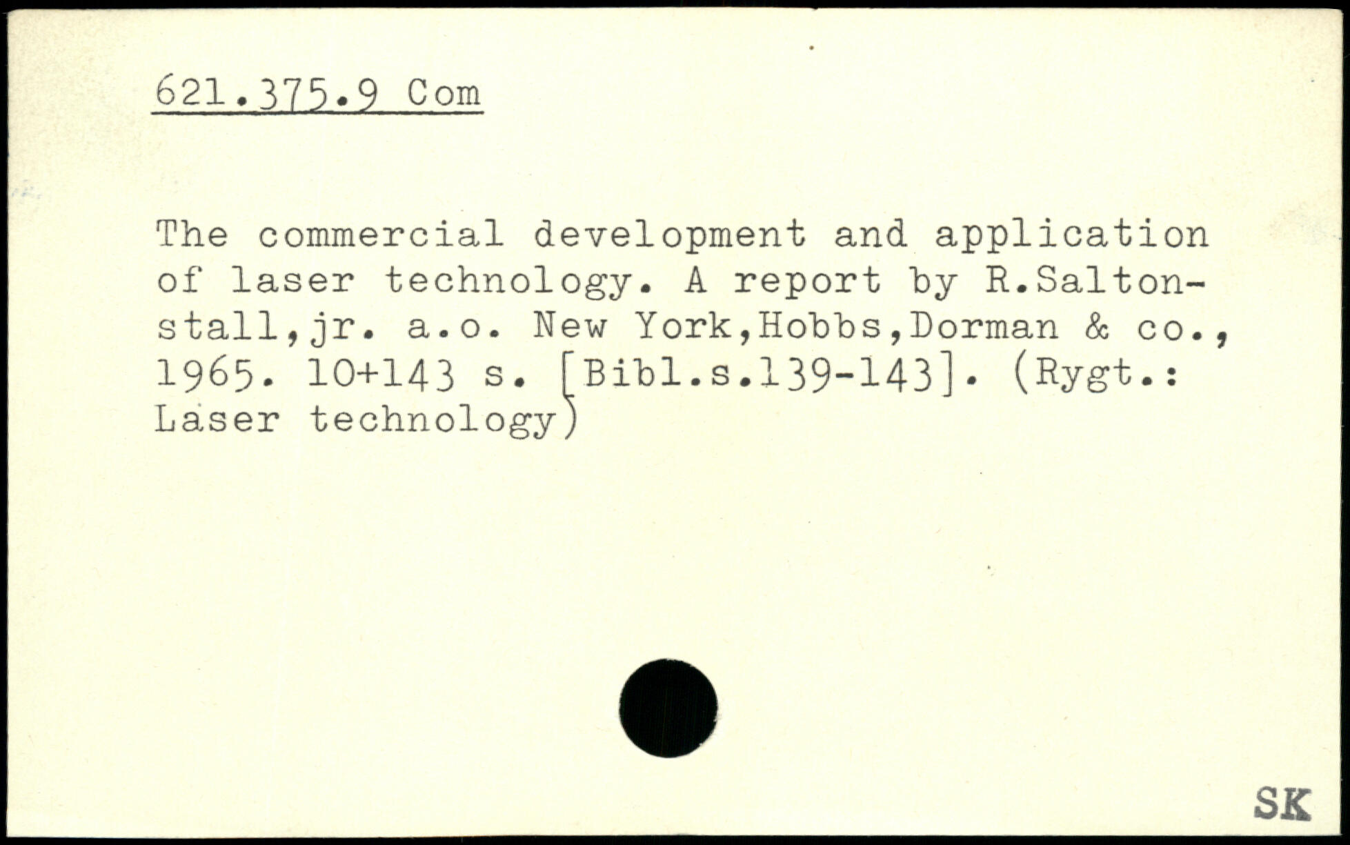 The commercial development and application of laser technology. A report hy R.Salton-stall,jr. a.o.