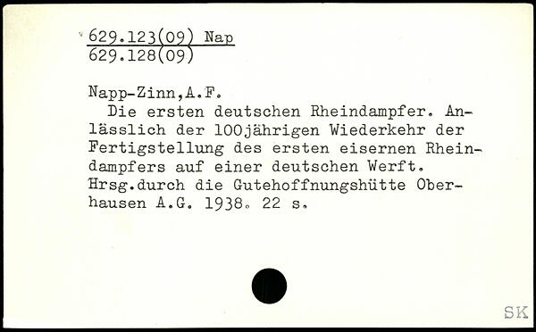 Die ersten deutschen Rheindampfer. Anlässlich der 100jährigen Wiederkehr der Fertigstellung des ersten eisernen Rheindampfers auf einer deutschen Werft. Hrsg.durch die Gutehoffnungshütte Oberhausen A.G. 1938o