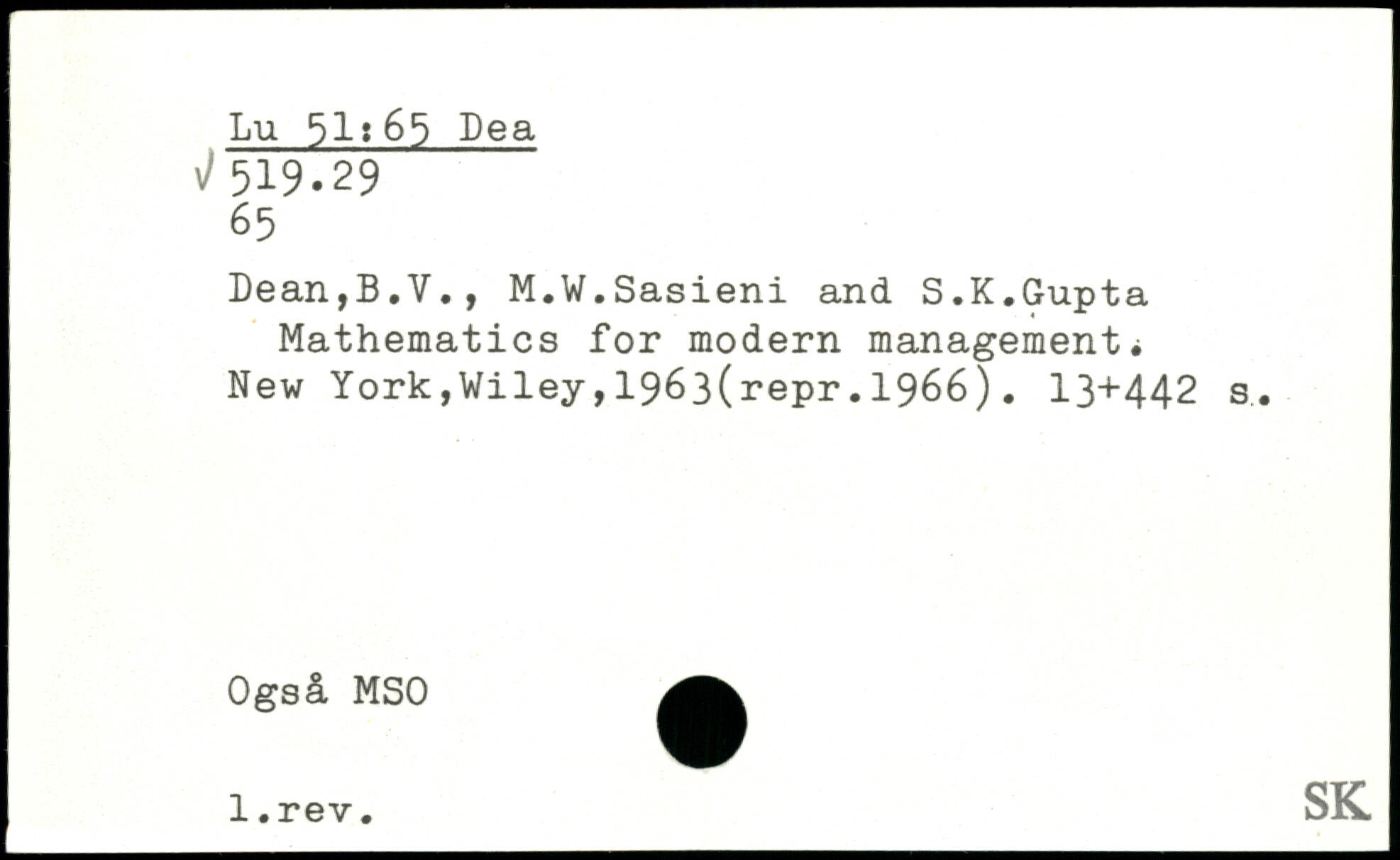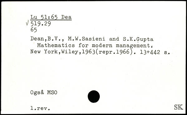 Dean,B.V., M.W.Sasieni and S.K.Gupta Mathematics for modern managements