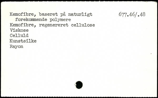 p. . I ---- .... . ................ - II ^ Kemofibre, baseret på naturligt 677.4-6/.48 forekommende polymere Kemofibre, regenereret cellulose Viskose Celluld Kunstsilke Rayon