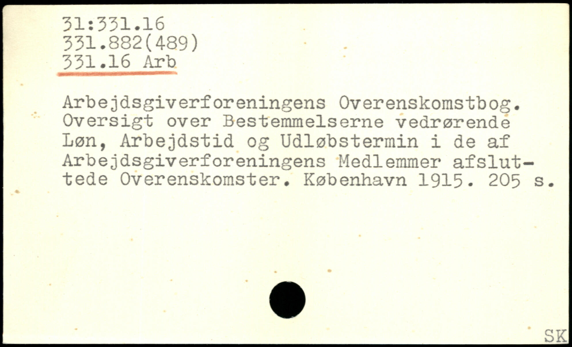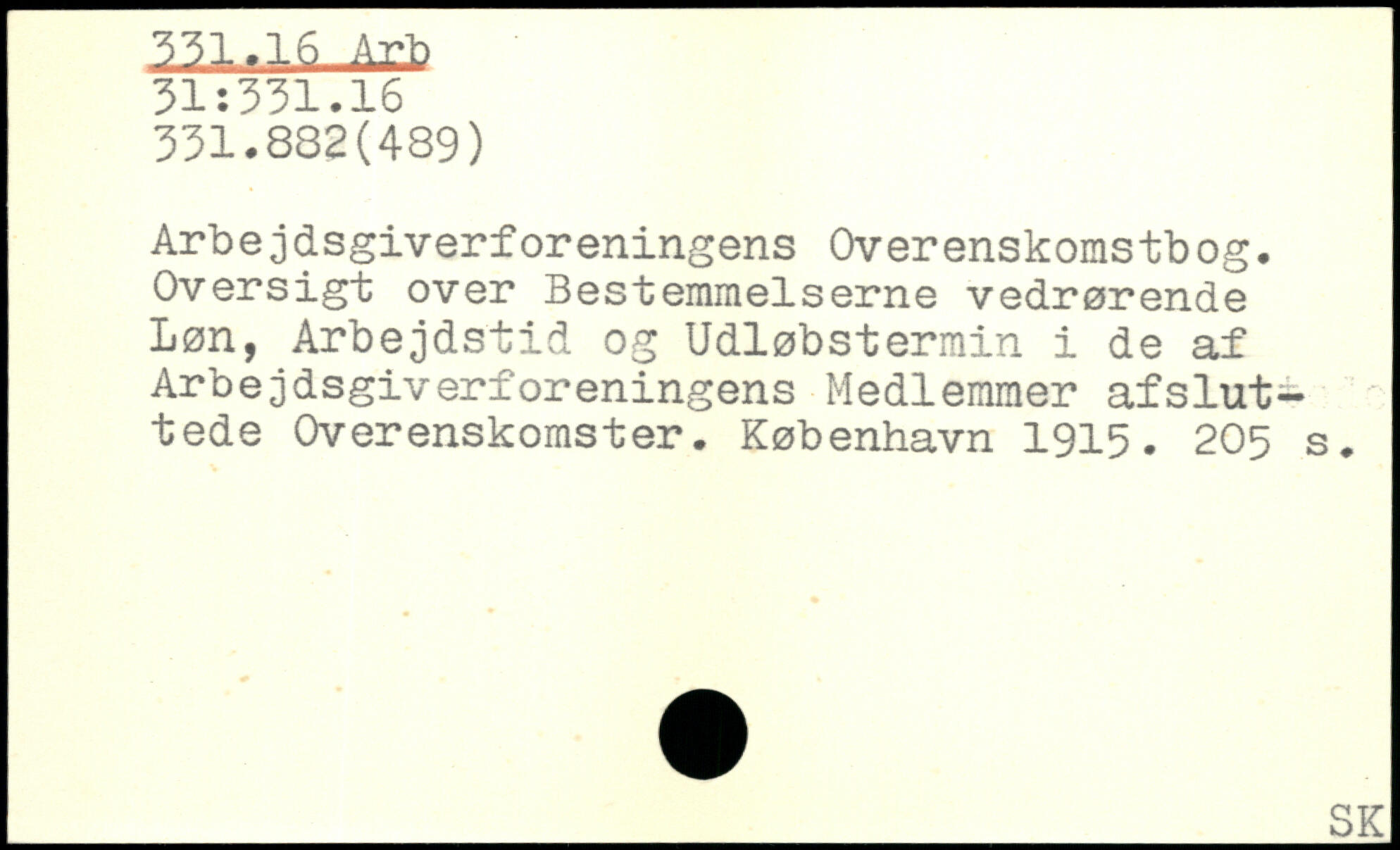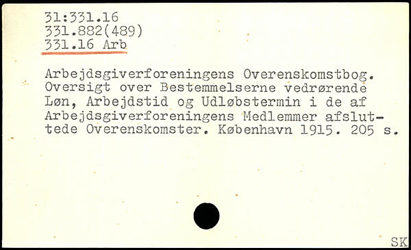 Arbejdsgiverforeningens Overenskomstbog. Oversigt over Bestemmelserne vedrørende Løn, Arbejdstid og Udløbstermin i de af Arbejdsgiverforeningens Medlemmer afsluttede Overenskomster.