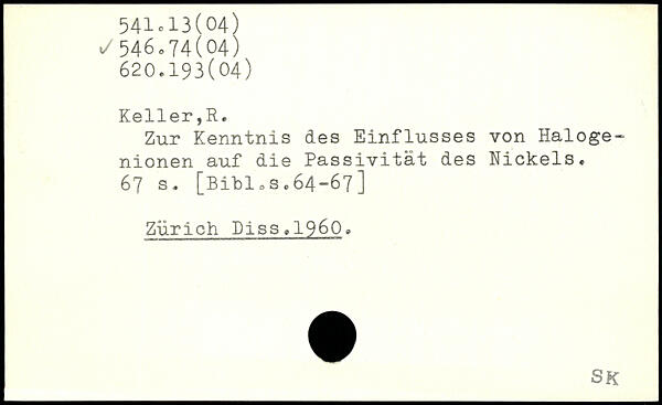 Zur Kenntnis des Einflusses von Halogenionen auf die Passivität des Nickels.