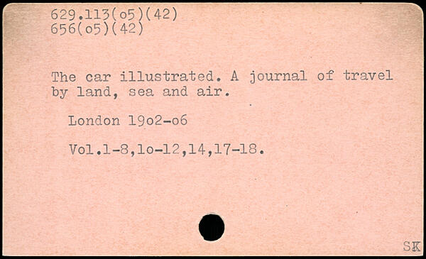 The car illustrated. A journal of travel by land, sea and air. London 19o2-o6 Vol.l-S,lo-12,14,17-18. _S£
