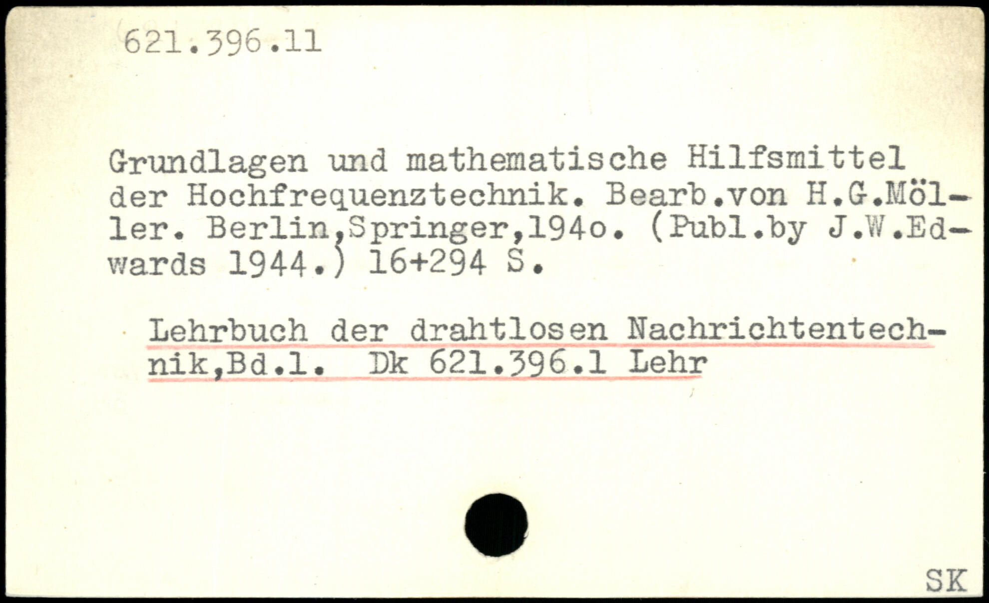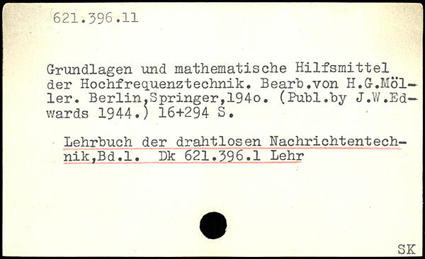 Grundlagen und mathematische Hilfsmittel der Hochfrequenztechnik. Bearh.von H.G.Möller. Berlin.Springer,194o. (