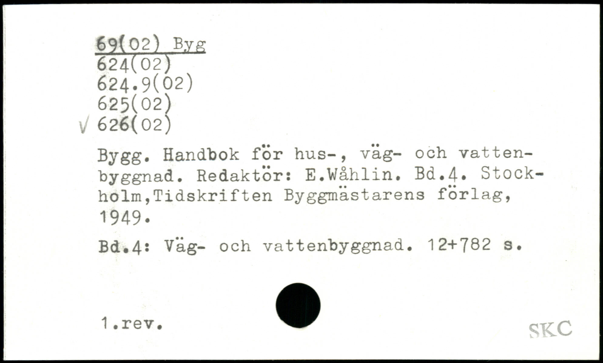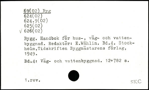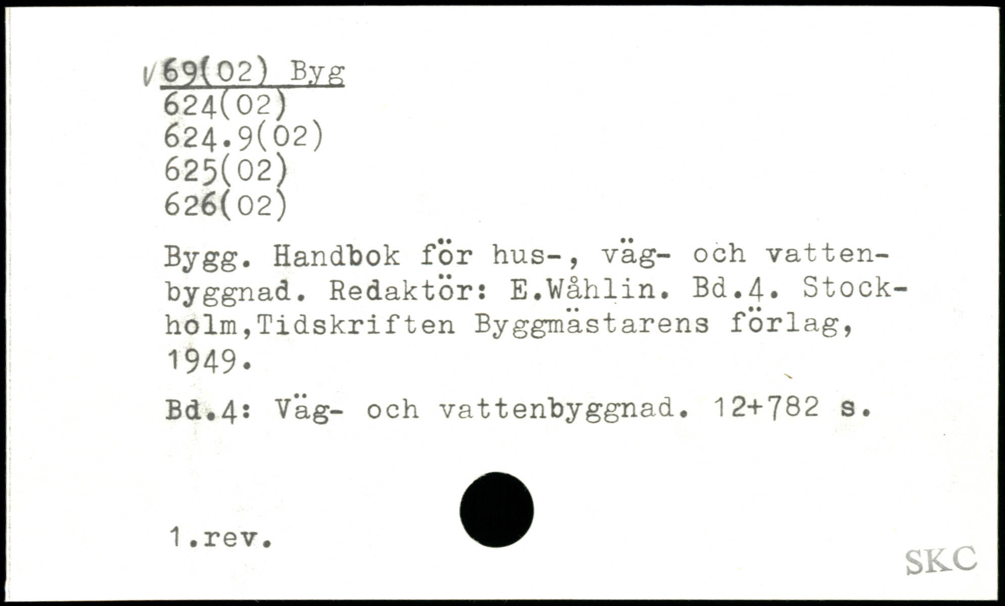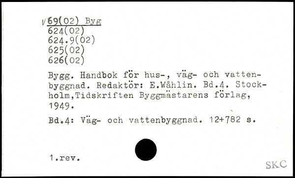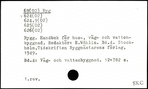 Bygg. Handbok för hus-, väg- och vattenbyggnad. Redaktör: E.Våhlin.