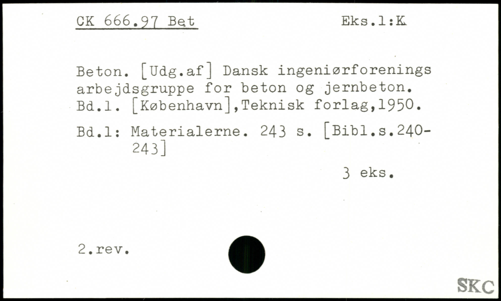 Beton. [Udg.af] Dansk ingeniørforenings arbejdsgruppe for beton og jernbeton. Bd.l. [København],Teknisk forlag,1950. Bd.l: Materialerne.