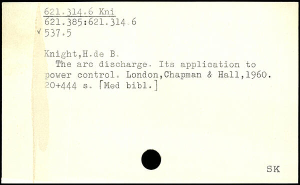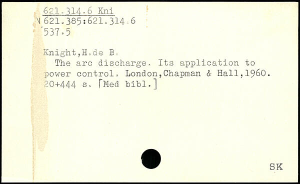 Knight,H.de B The arc discharge. Its application to power control, London,Chapman &■ Hall,1960.
