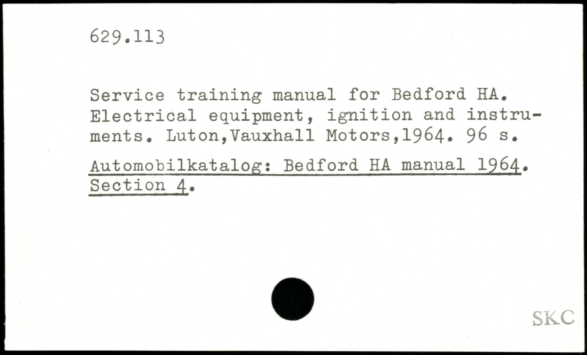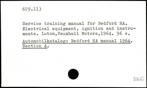 Service training manual for Bedford HA. Electrical equipment, ignition and instruments.