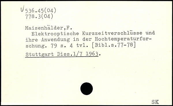 Elektrooptische Kurzzeitverschlusse und ihre Anwendung in der Hochtemperaturforschung.