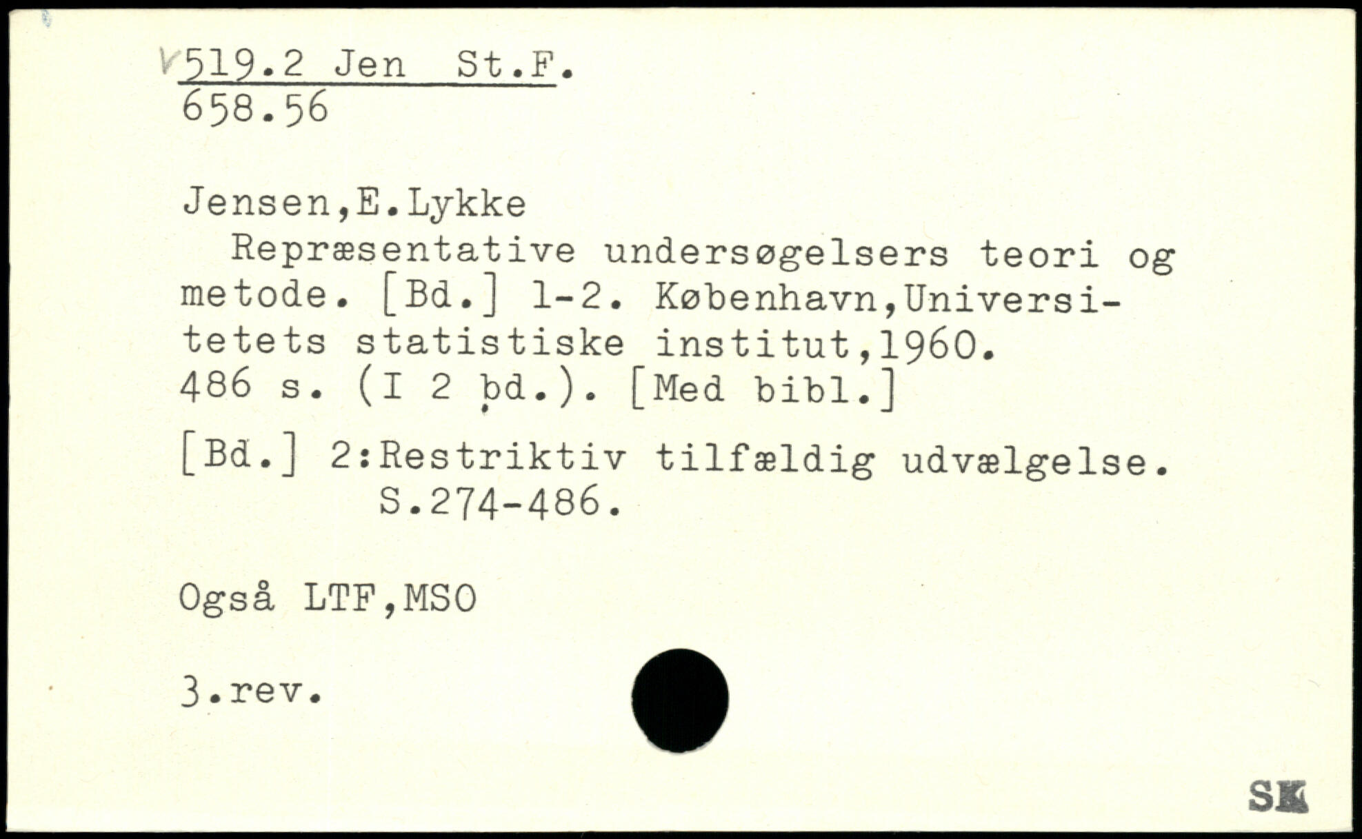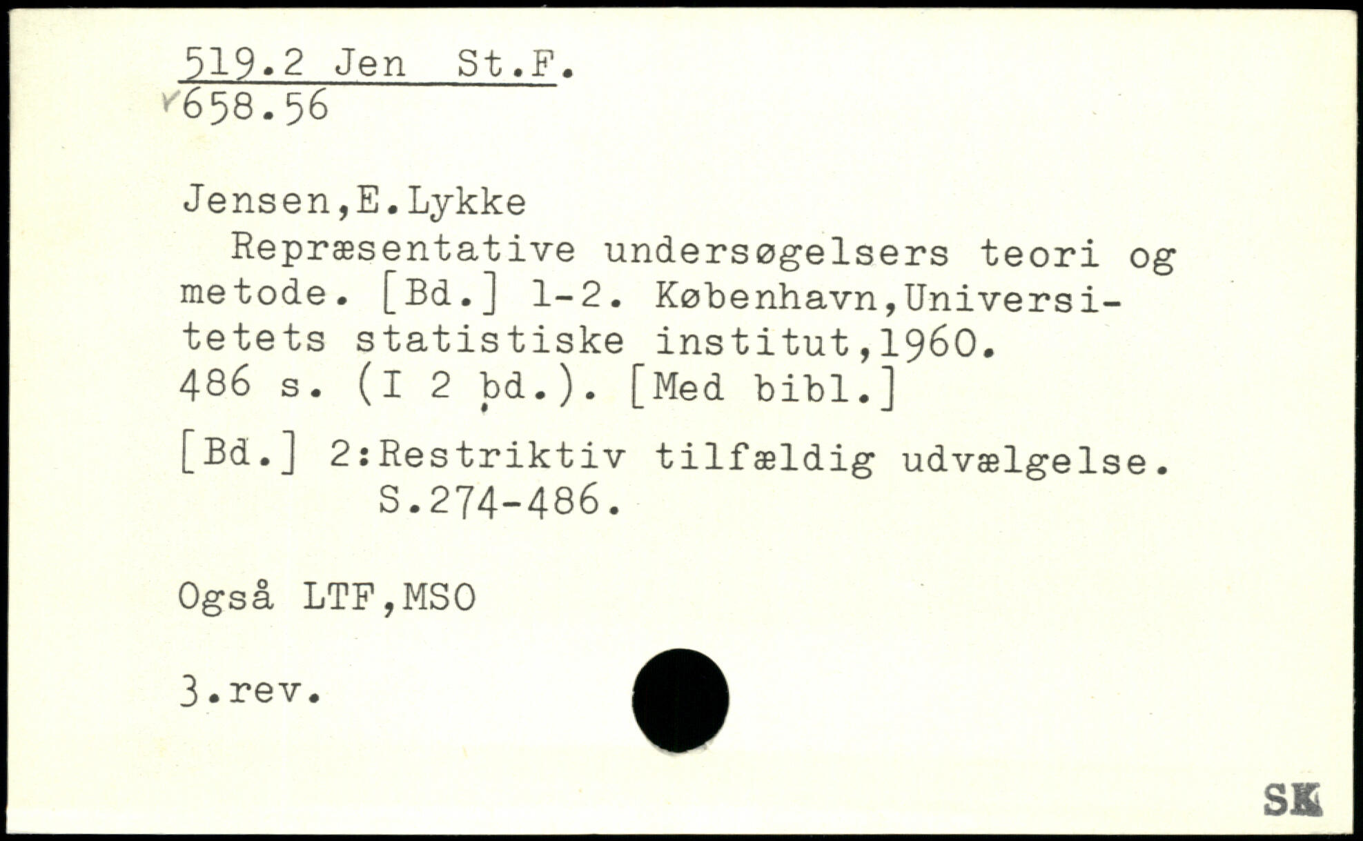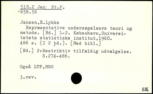 Jensen,E.Lykke Repræsentative undersøgelsers teori og metode. [Bd.] 1-2.
