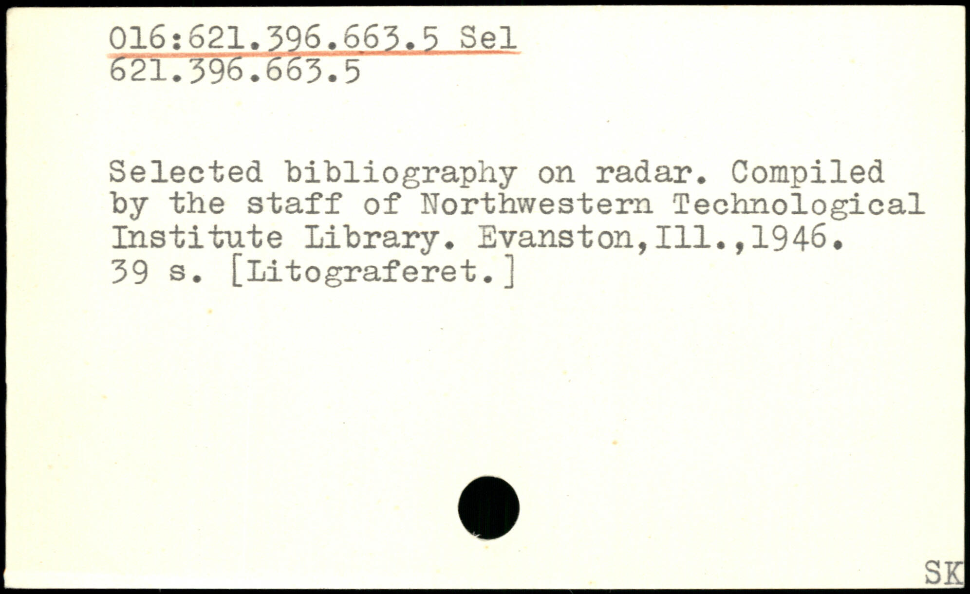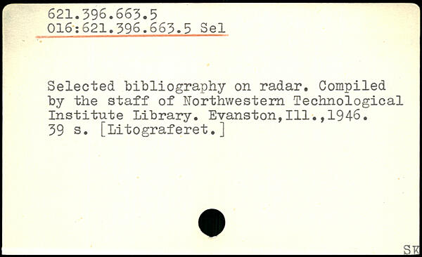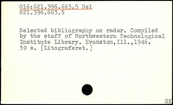 Selected bibliography on radar. Compiled by the staff of Northwestern Technological Institute Library. Evanston,111.,1946