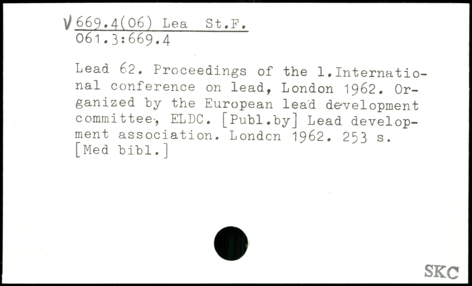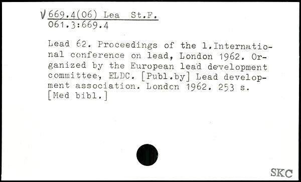 Lead 6-2. Proceedings of the 1, International conference on lead