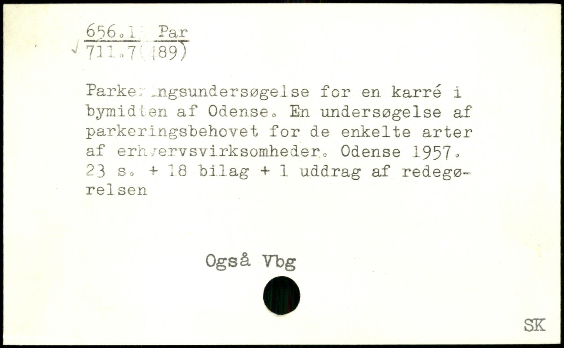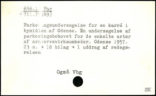 Parke: _ngsundersøgelse for en karré i bymidten af Odense, En undersøgelse af parkeringsbehovet for de enkelte arter af erh/ervsvirksomhedero Odense 1957