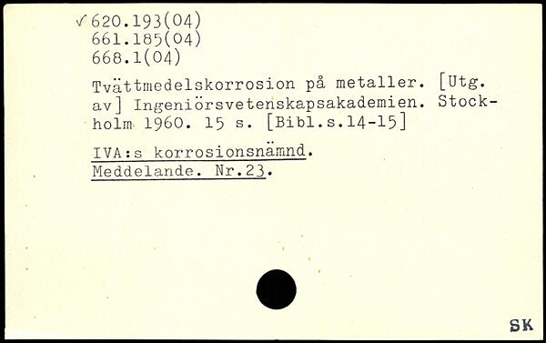 Tvättmedelskorrosion på metaller. [Utg. av] Ingeniorsvetenskapsakademien.