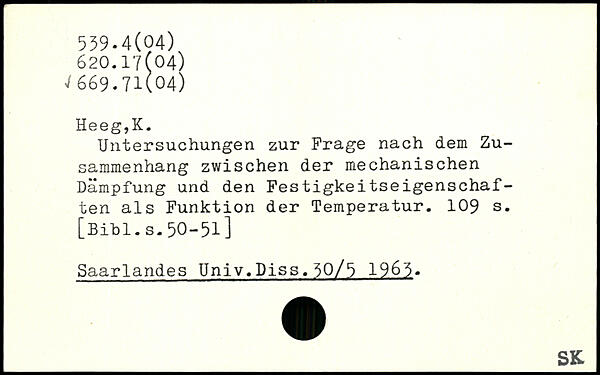 Untersuchungen zur Frage nach dem Zusammenhang zwischen der mechanischen Dämpfung und den Festigkeitseigenschaf-ten als Funktion der Temperatur.