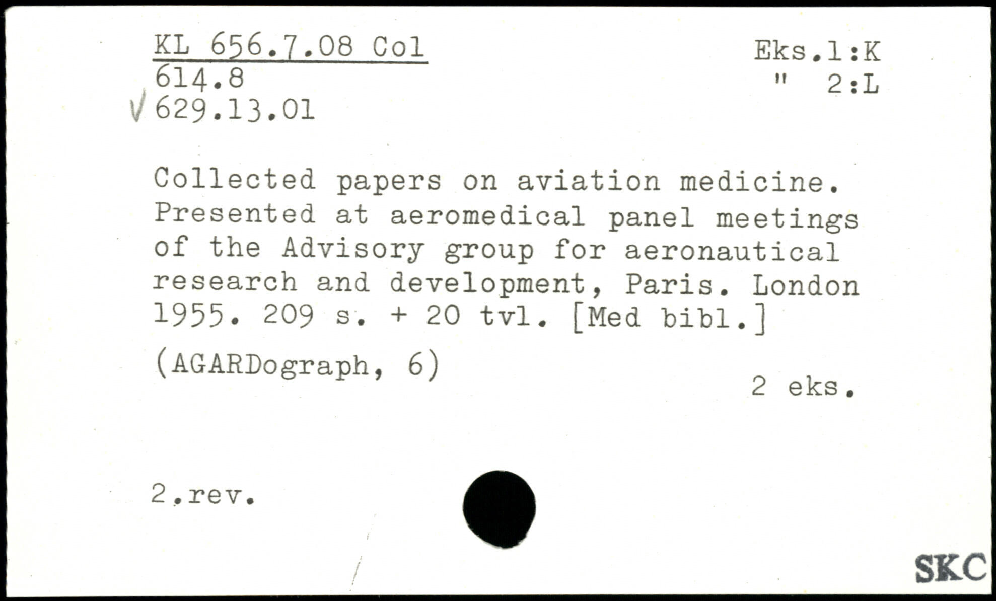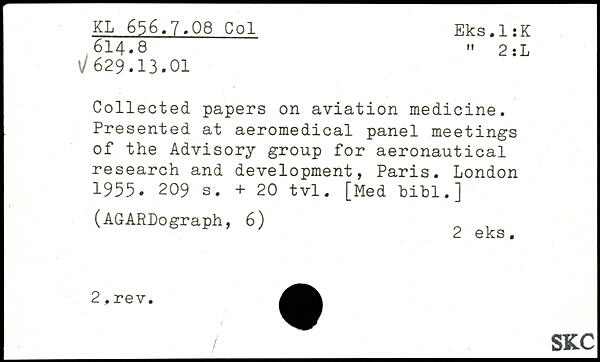 Collected papers on aviation medicine. Presented at aeromedical panel meetings of the Advisory group for aeronautical research and development, Paris.