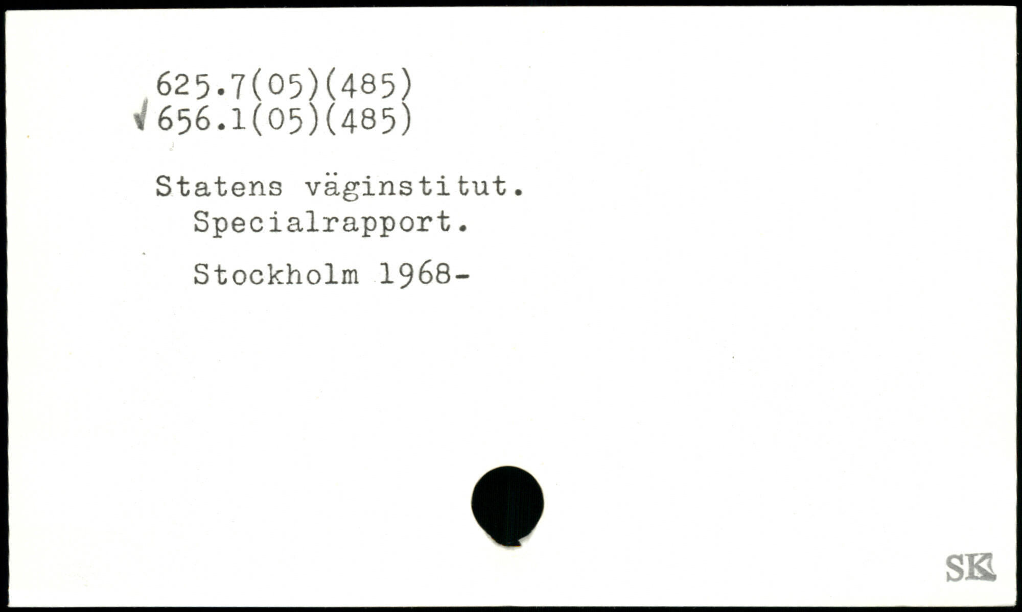 Statens vaginstitut. Specialrapport.
