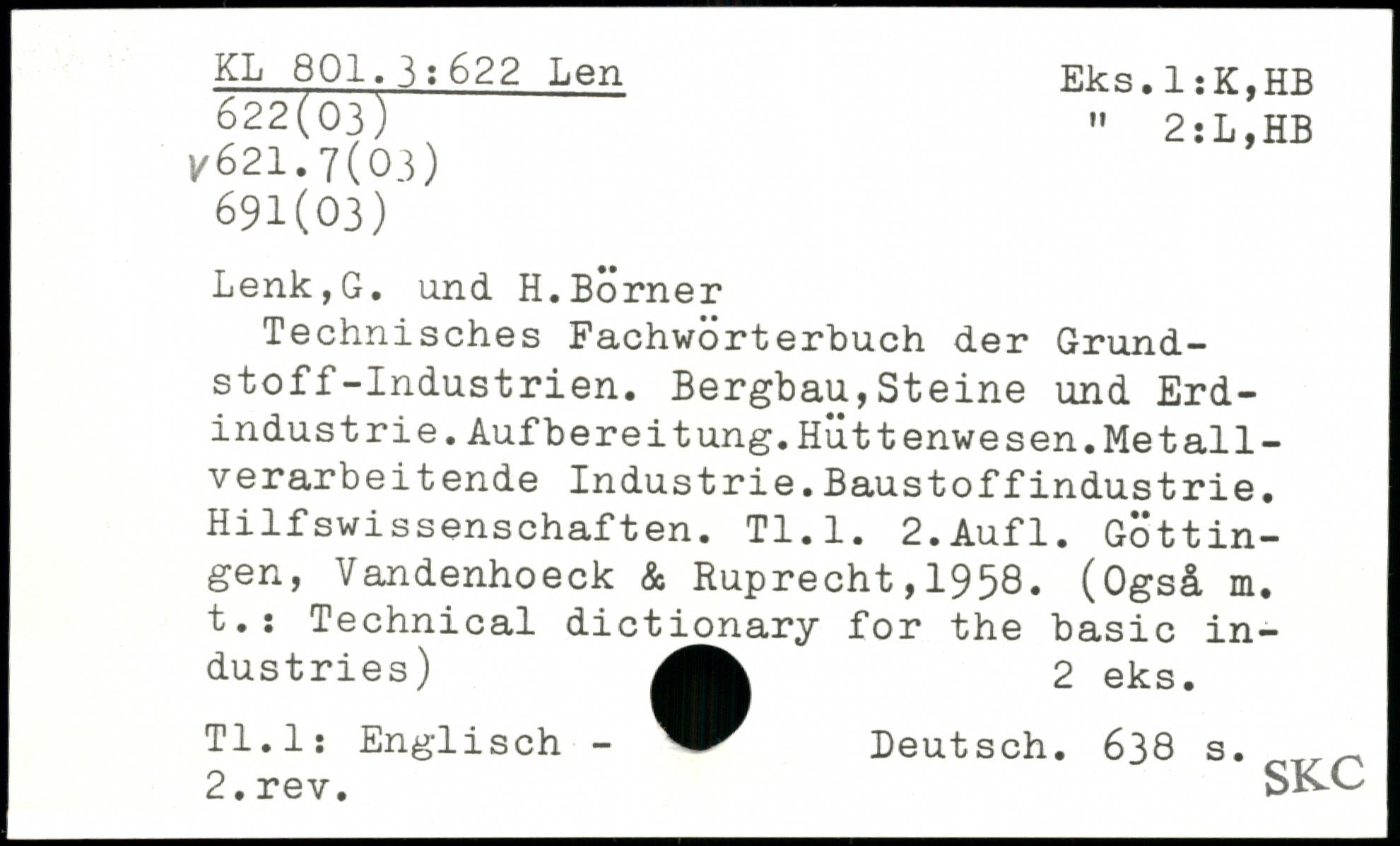 UDK: 622 Len, 622(03), 621.7(03), 691(03)