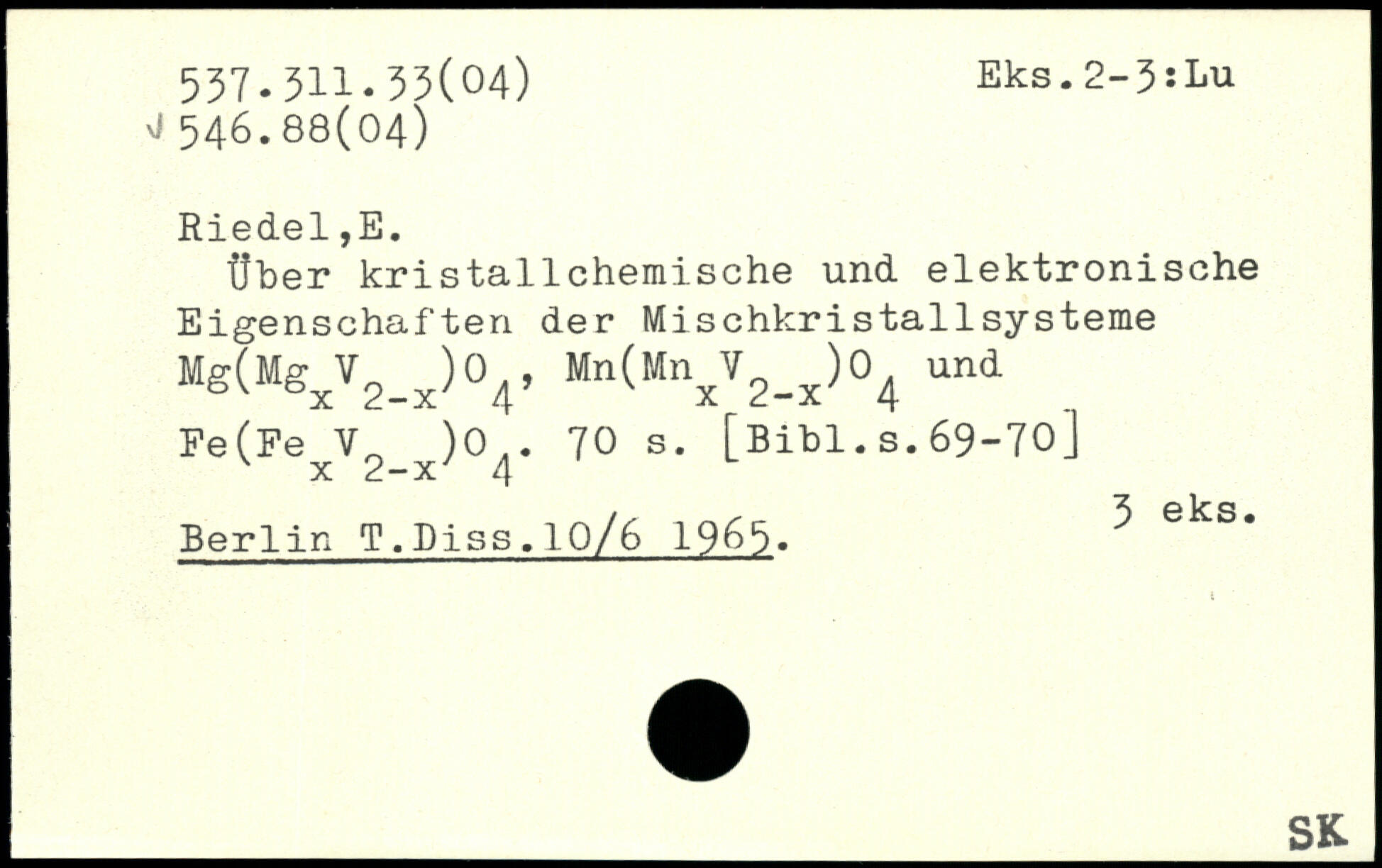 Über kristallchemische und elektronische Eigenschaften der Mischkristallsysteme Mg(MgxV2_x)04, Mn(MnxV2_x)04 und Fe(Fe V, )0..