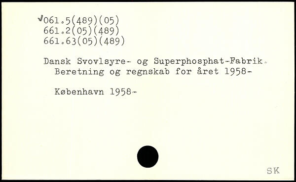 Dansk Svovlsyre- og Superphosphat-Fabrik, Beretning og regnskab for året 1958-