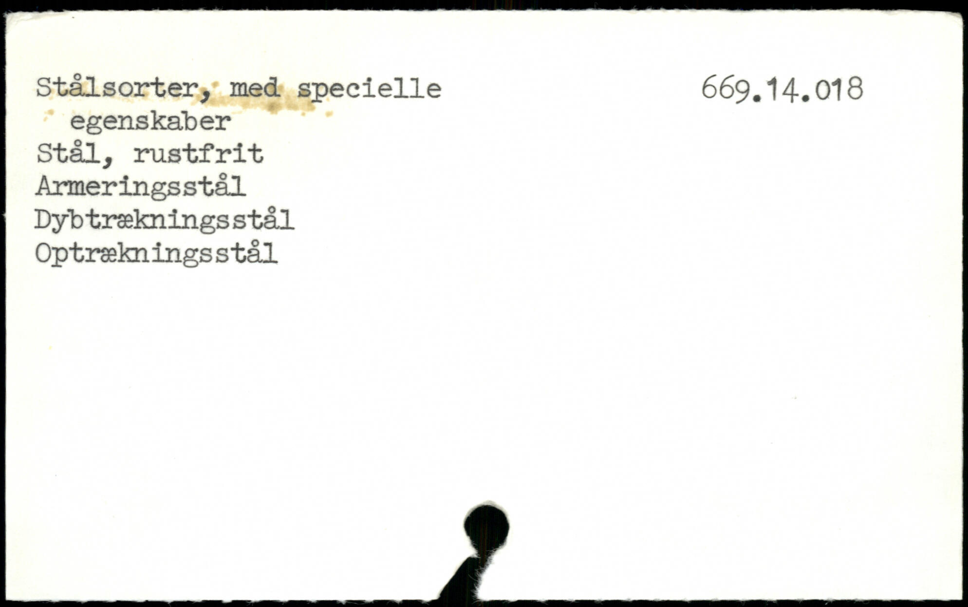 Stålsorter, med specielle 669.14.018 egenskaber Stål, rustfrit Armerings stål Dybtræknings stål Optræknings stål _l_