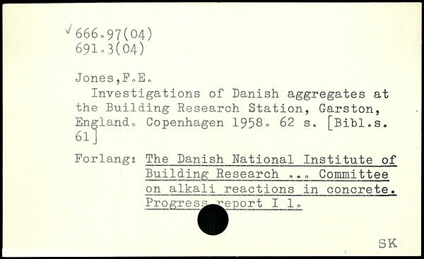 Jones,FoEs Investigations of Danish aggregates at the Building Research Station, Garston, Englando