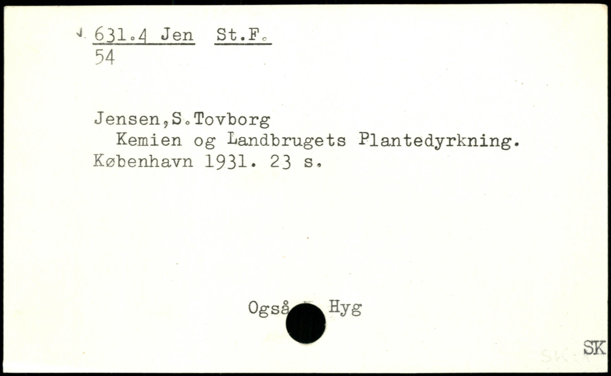 Jensen,S.Tovborg Kemien og Landbrugets Plantedyrkning.
