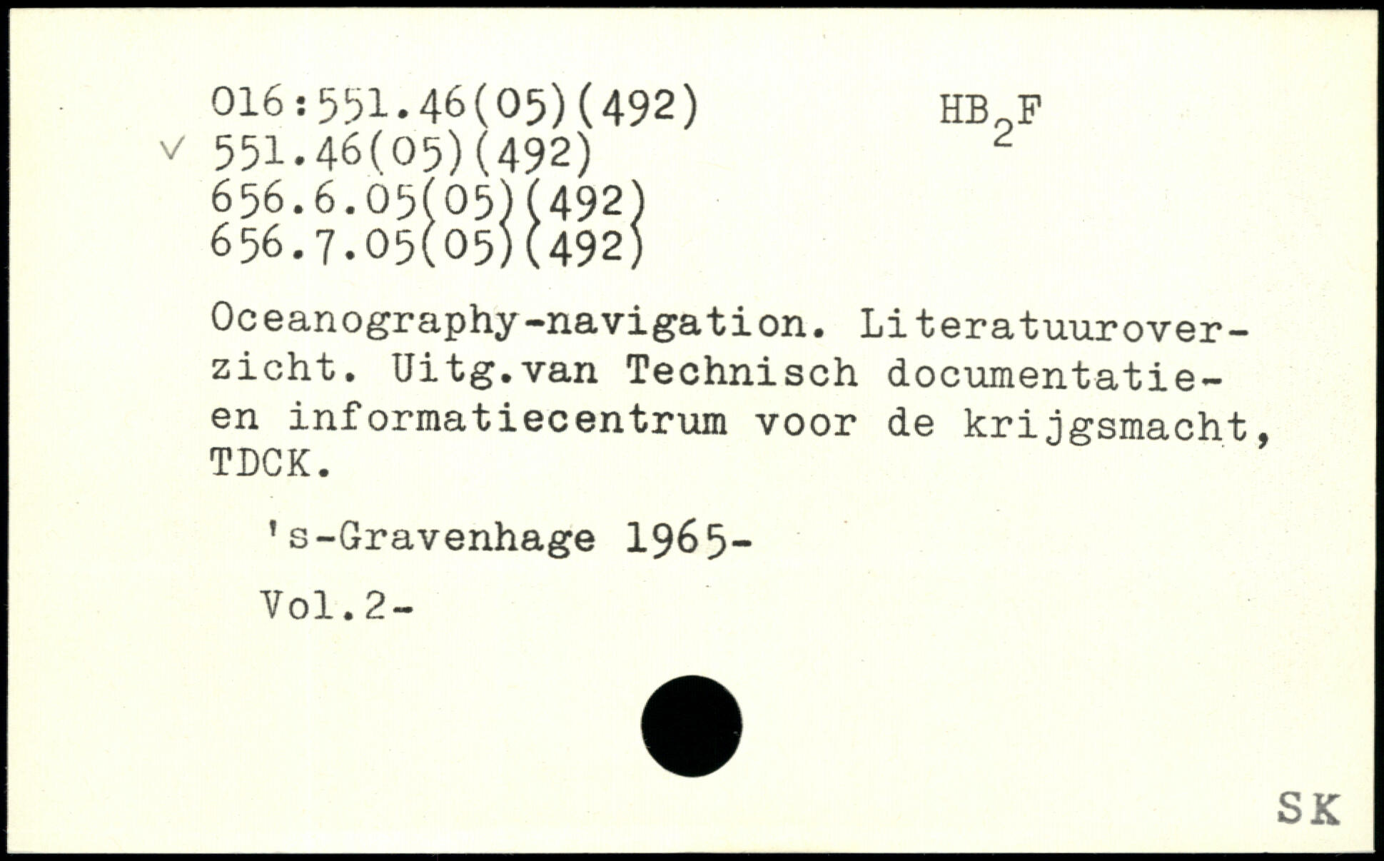 Oceanography-navigation. Literatuurover-zieht. Uitg.van Technisch documentatie-en informatiecentrum voor de krijgsmacht, TUCK. ’s-Gravenhage 1965-