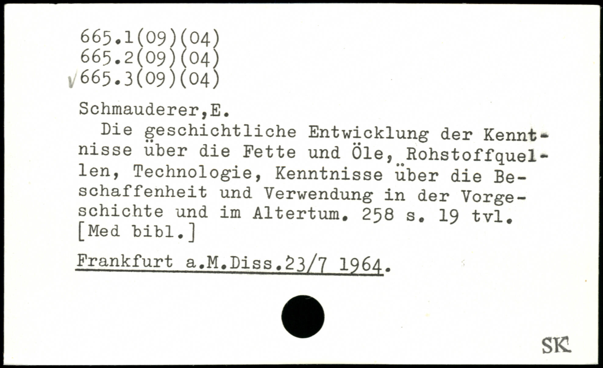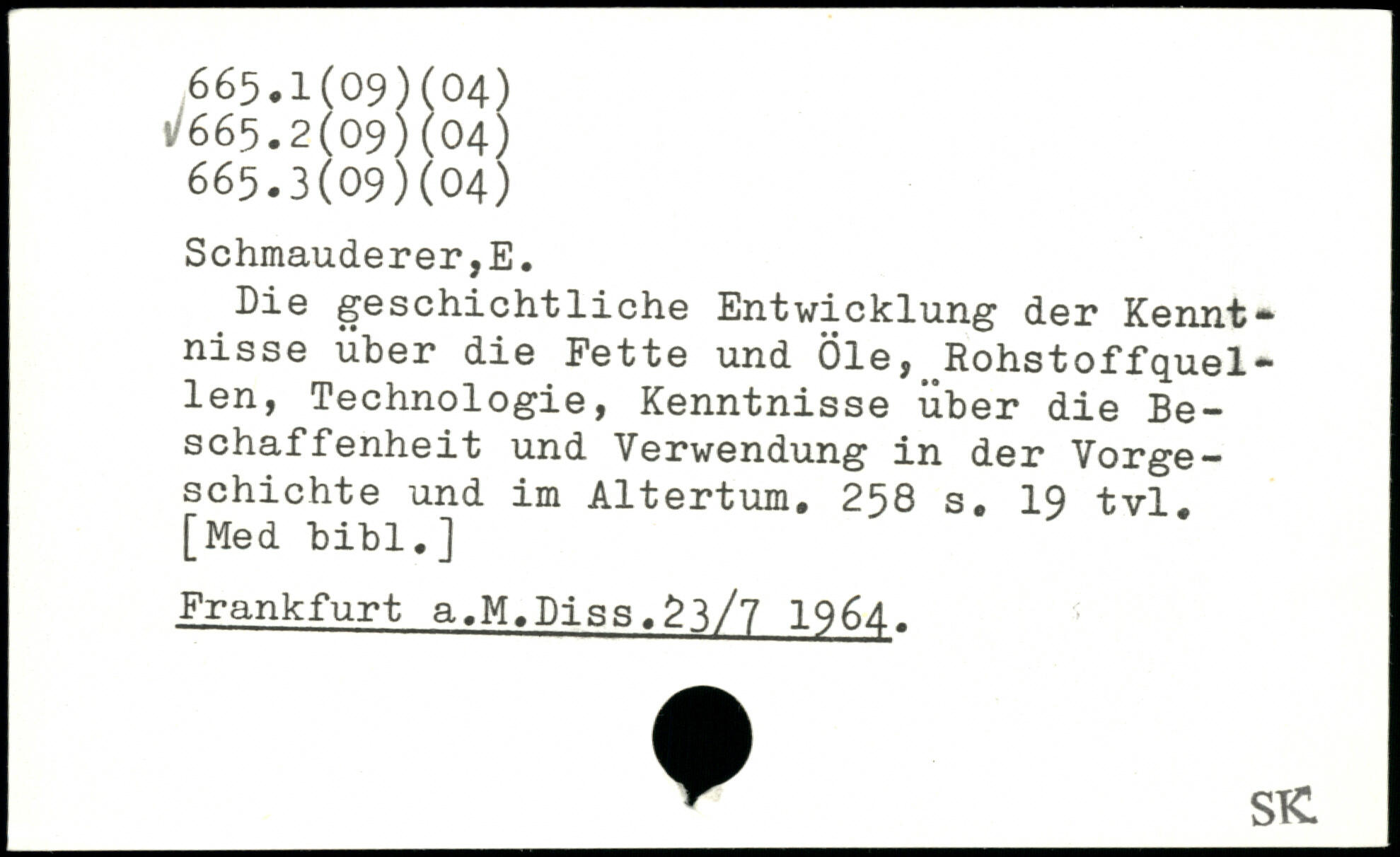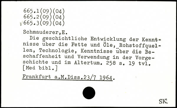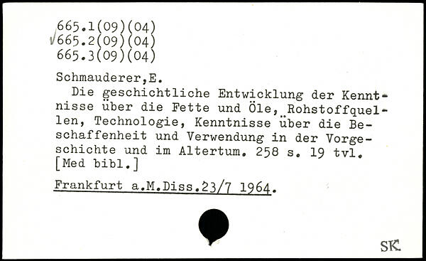 Die geschichtliche Entwicklung der Kennt.. nisse über die Fette und Öle,^Rohstoffquellen, Technologie, Kenntnisse über die Beschaffenheit und Verwendung in der Vorgeschichte und im Altertum.