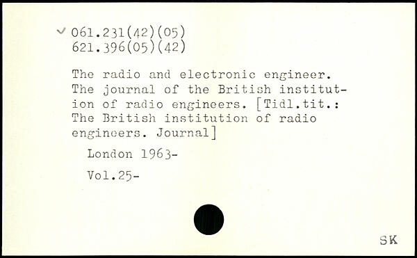 The radio and electronic engineer. The journal of the British institution of radio engineers. [Tidl.tit.: The British institution of radio engineers. Journal] London 196 3—