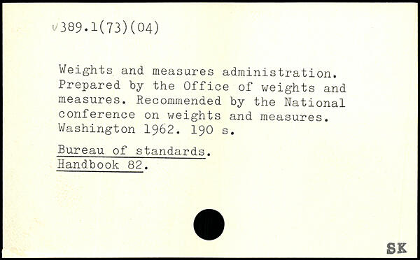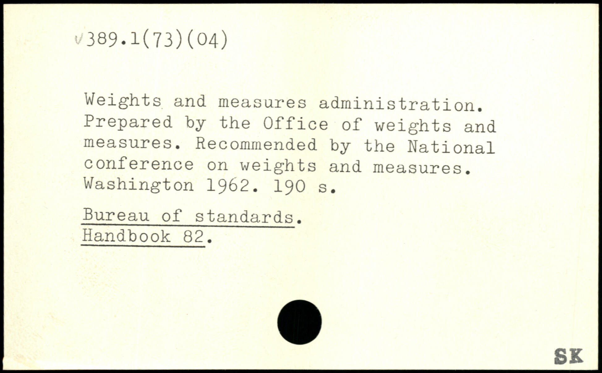 Weights and measures administration. Prepared by the Office of weights and measures. Recommended by the National conference on weights and measures.
