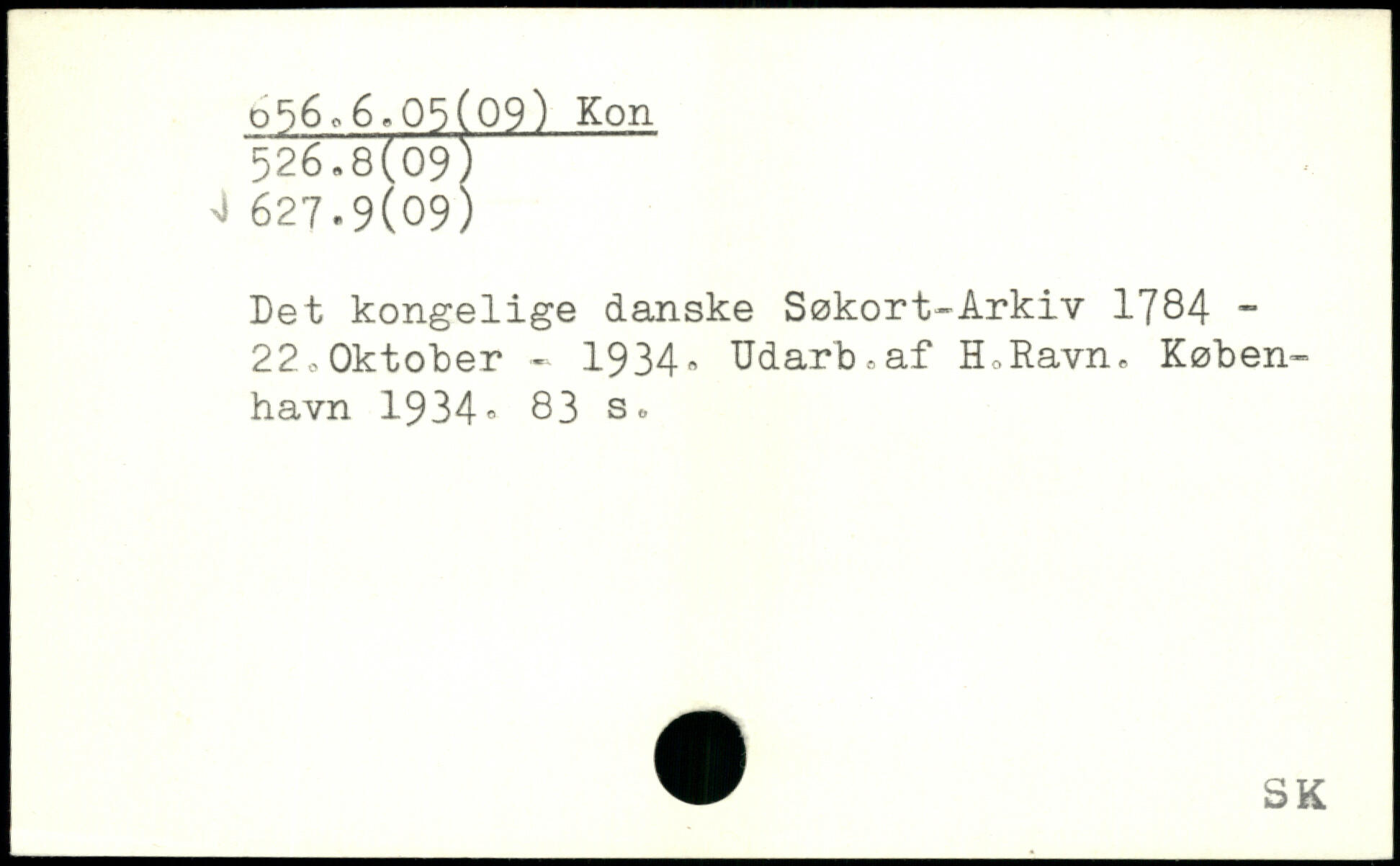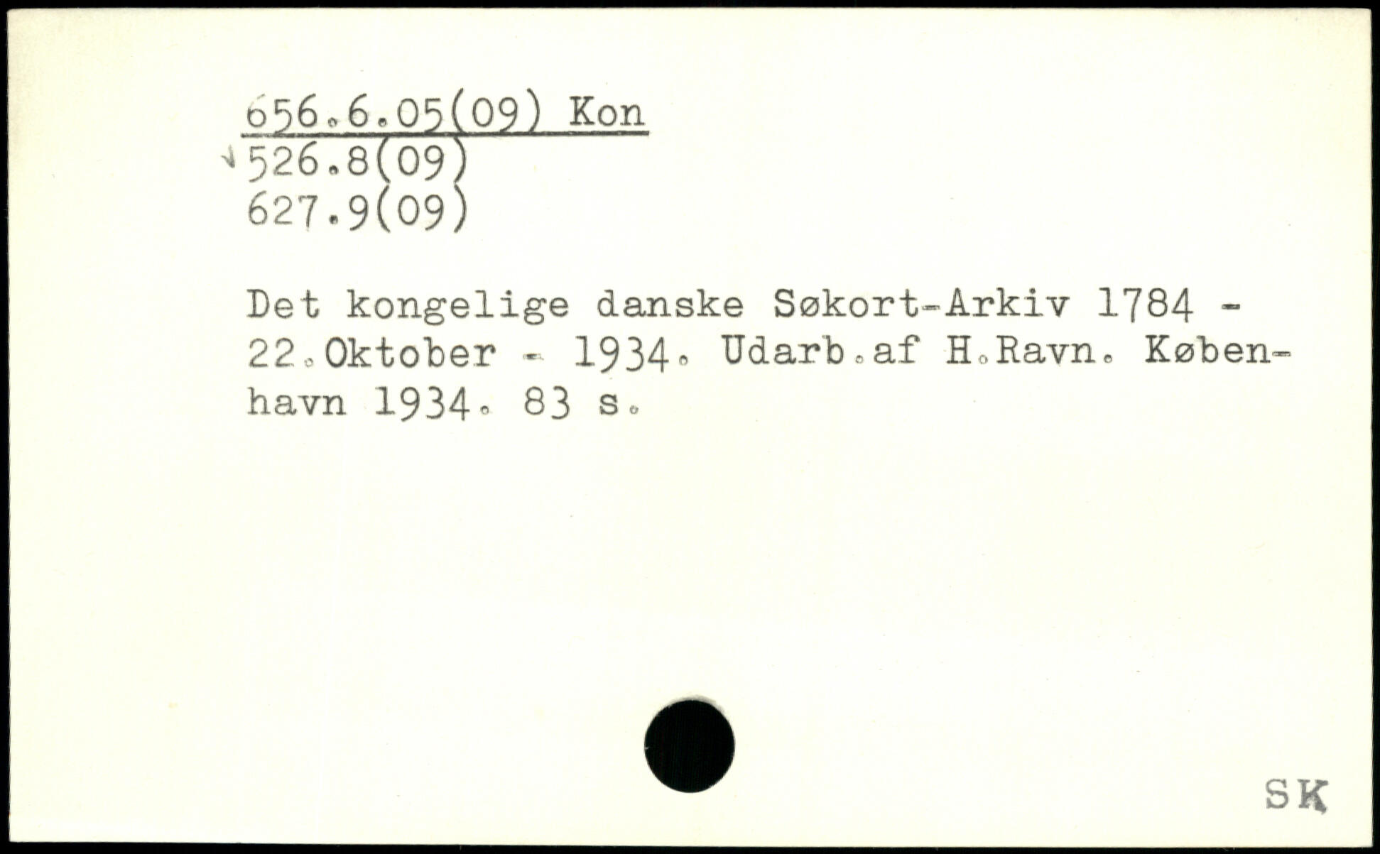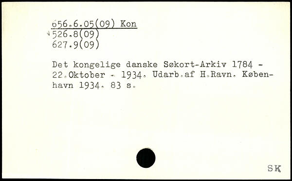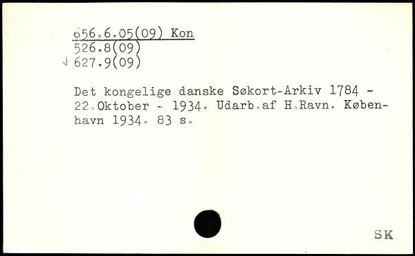 Det kongelige danske Søkort-Arkiv 1784 -22 o Oktober - 1934, Udarb.af HoRavn.