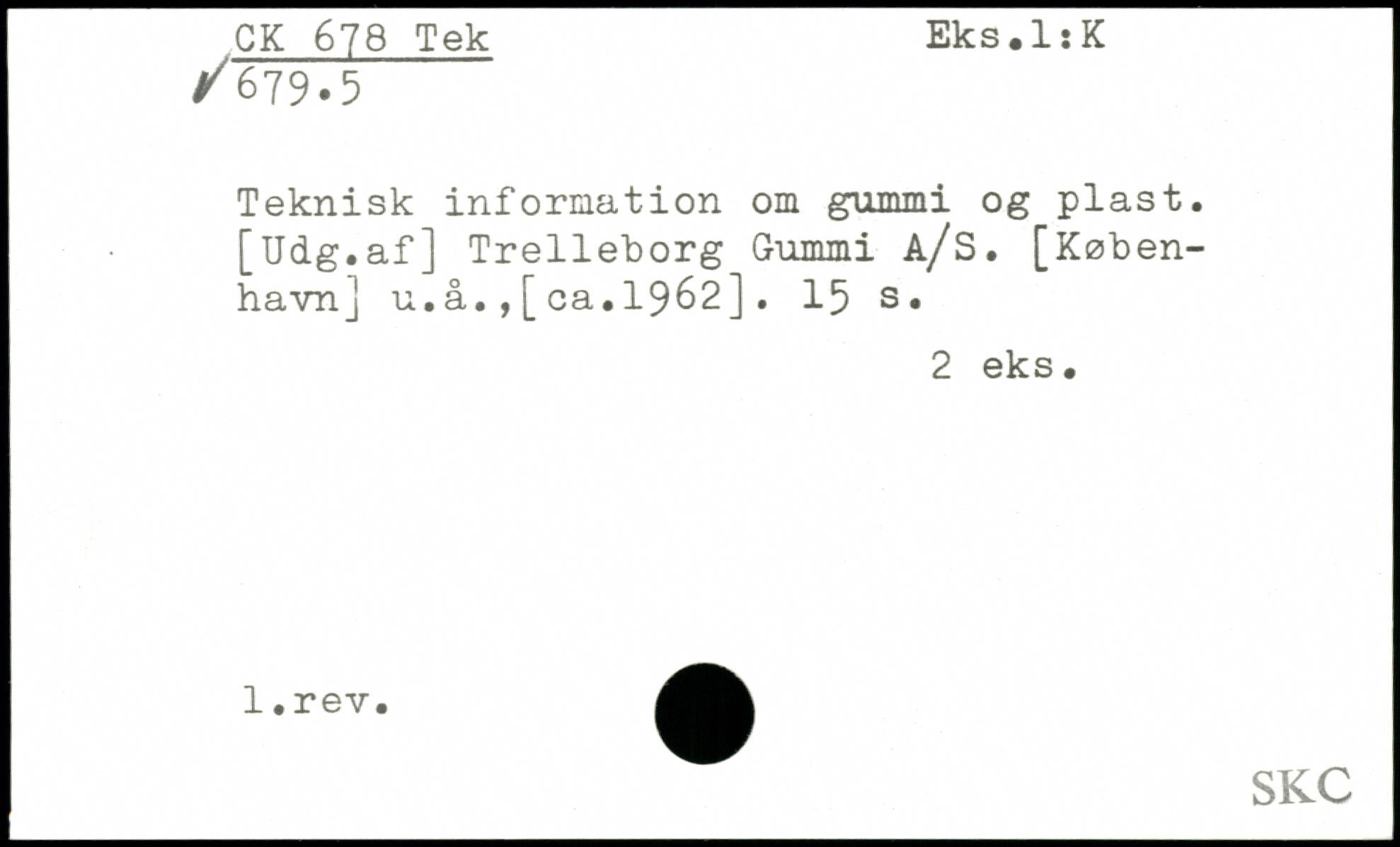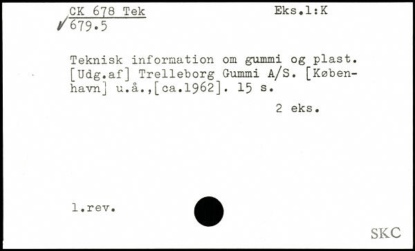 Teknisk information om gummi og plast. [Udg.af] Trelleborg Gummi A/S.