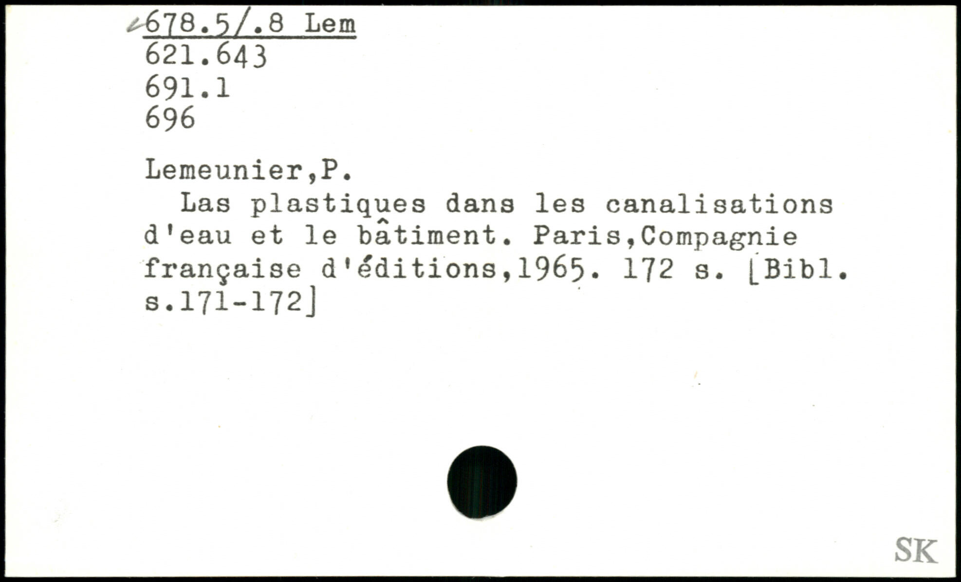Las plastiques dans les canalisations d'eau et le batiment. Paris,Compagnie française d'éditions,1965.