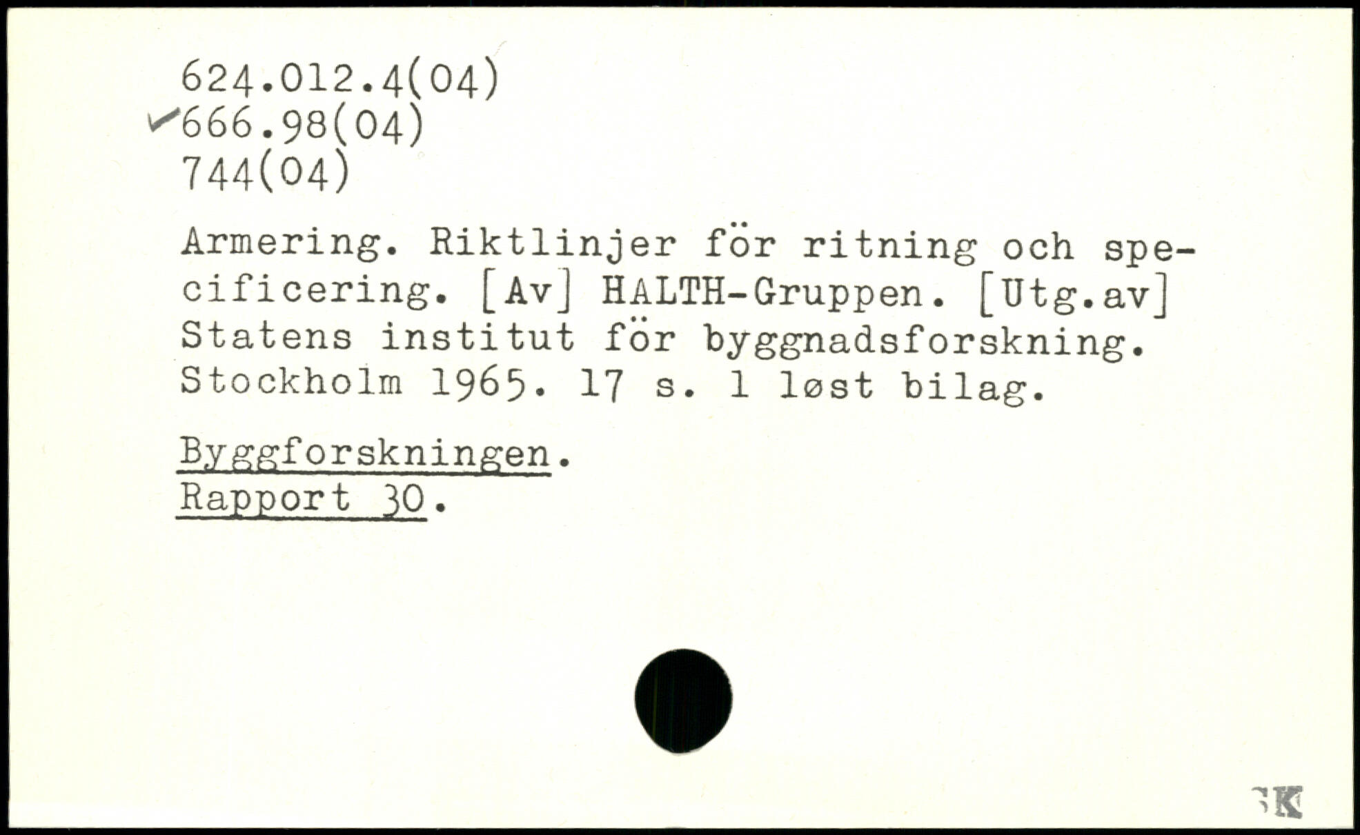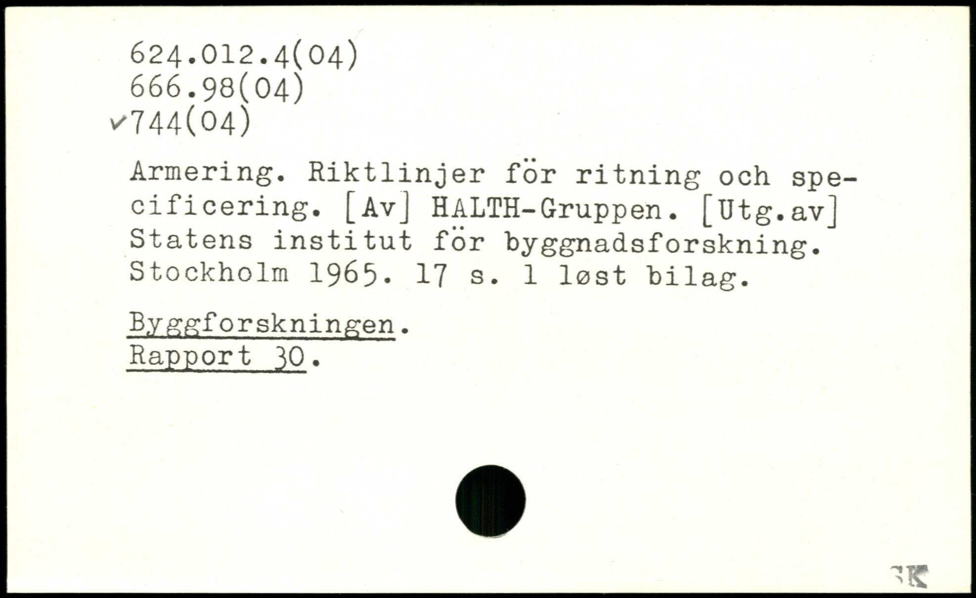 Armering. Riktlinjer för ritning och specificering. [Av] HALTH-Gruppen.
